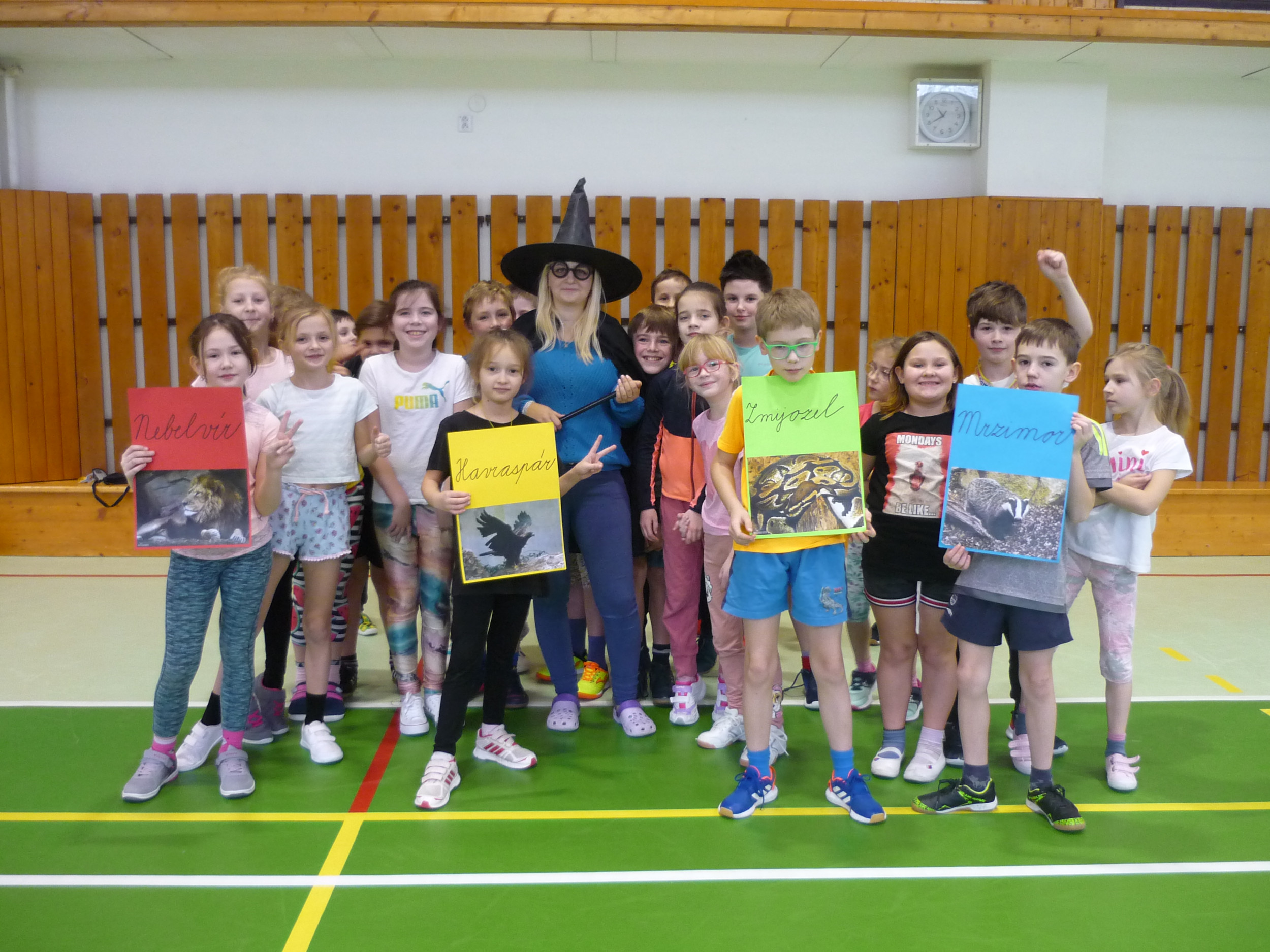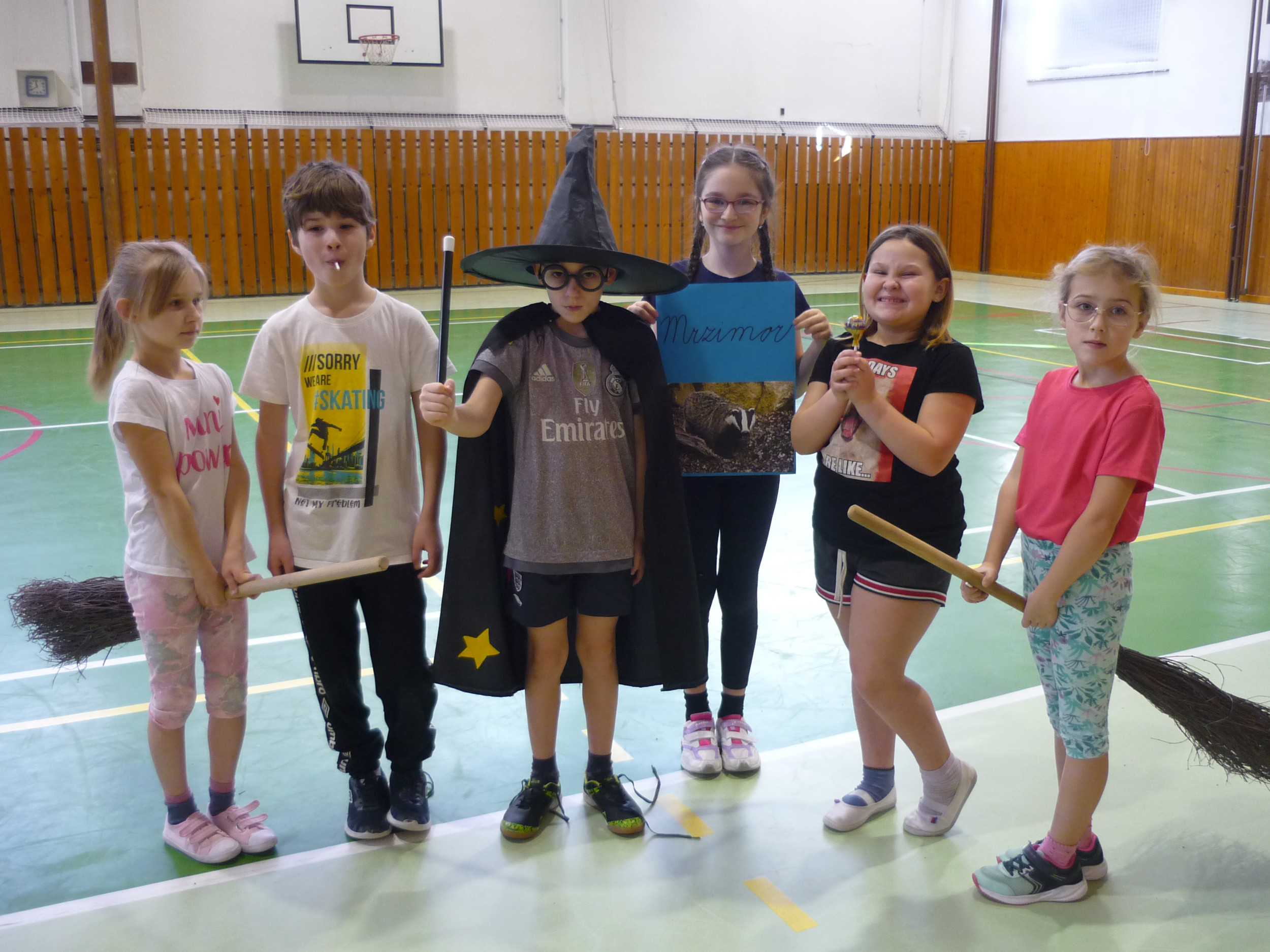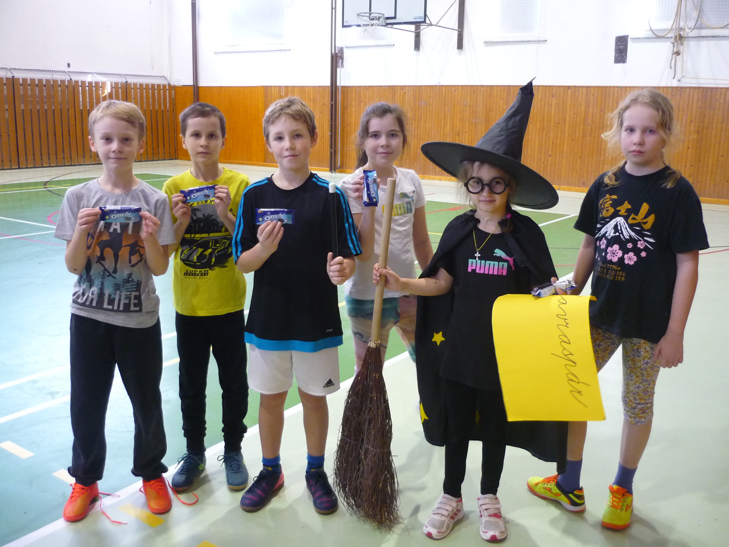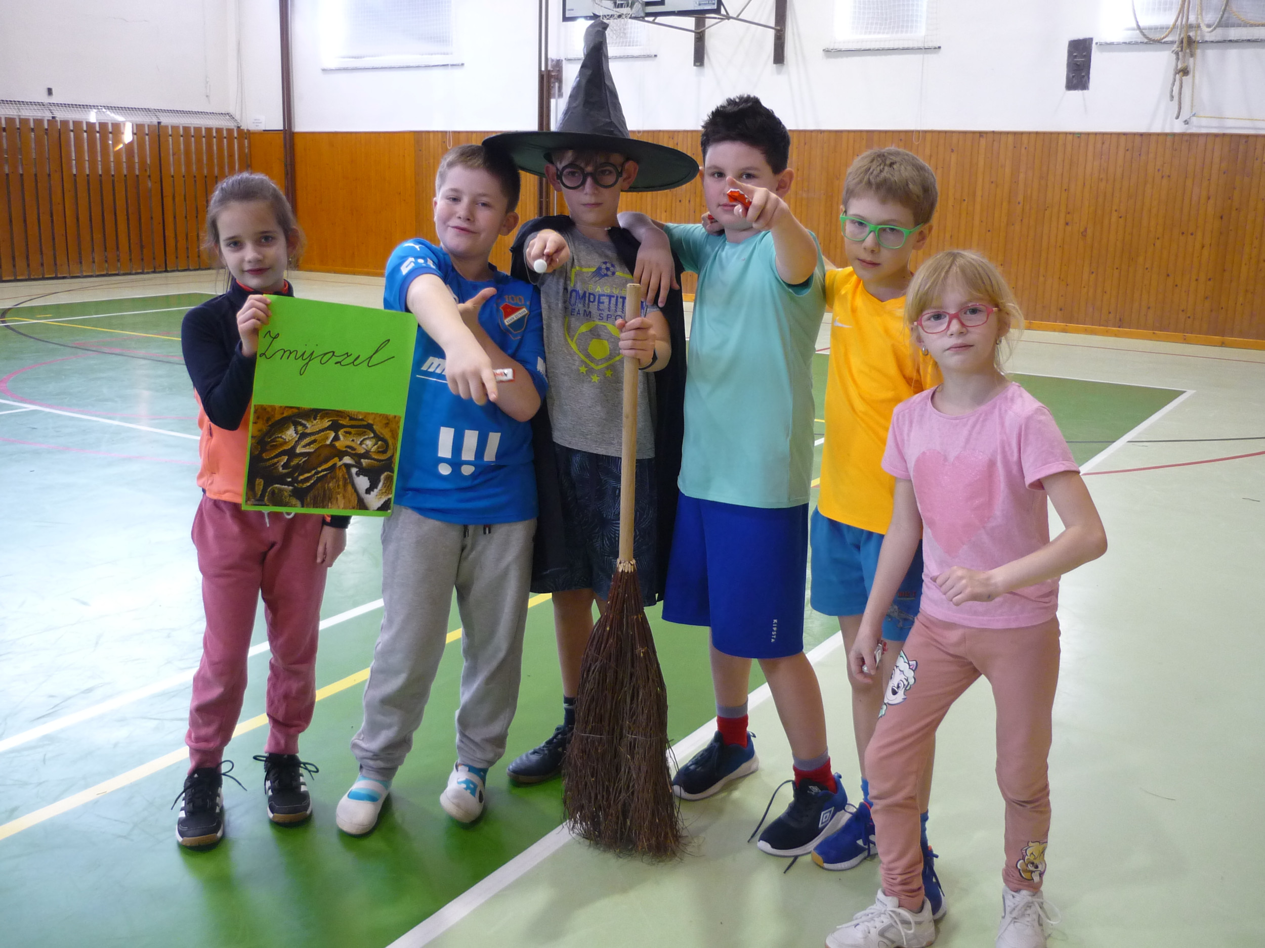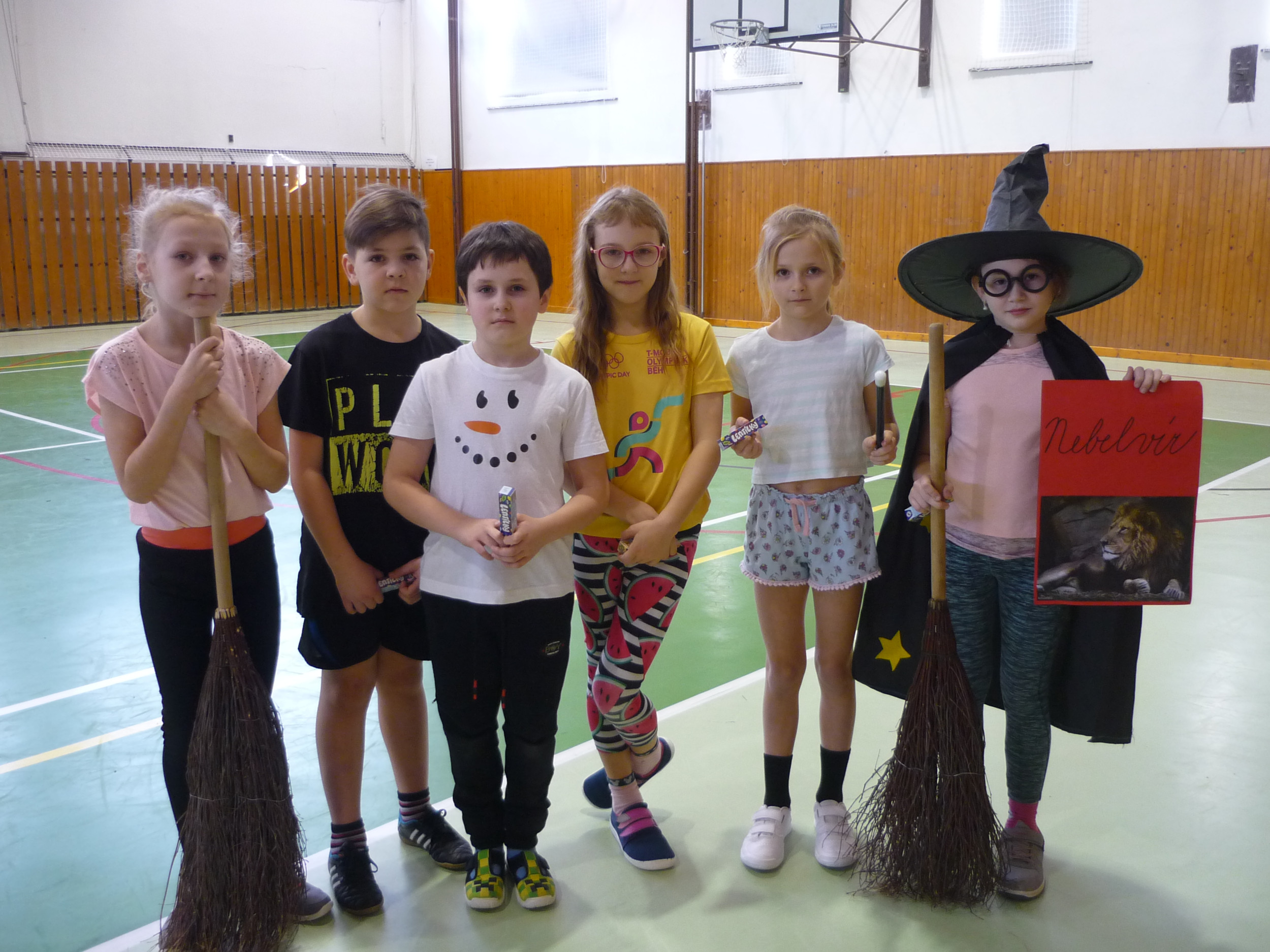 V den předávání vysvědčení v tělocvičně soutěžily čtyři bradavické koleje: Nebelvír, Havraspár, Zmijozel a Mrzimor. Kouzelný klobouk spravedlivě rozdělil žáky 3. třídy do družstev a už se soutěžilo v různých sportovních disciplínách. Let na koštěti byl na řadě jako první. Nemohla chybět ani soví pošta s Hedvikou. Všichni si to náramně užili, žáci i paní učitelka Kamila a paní vychovatelka Simona, které program pro děti připravily.