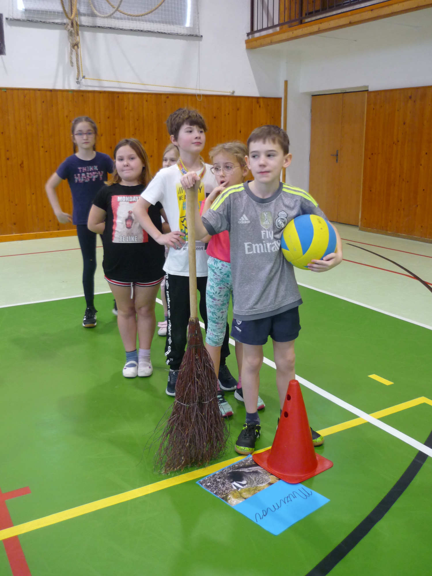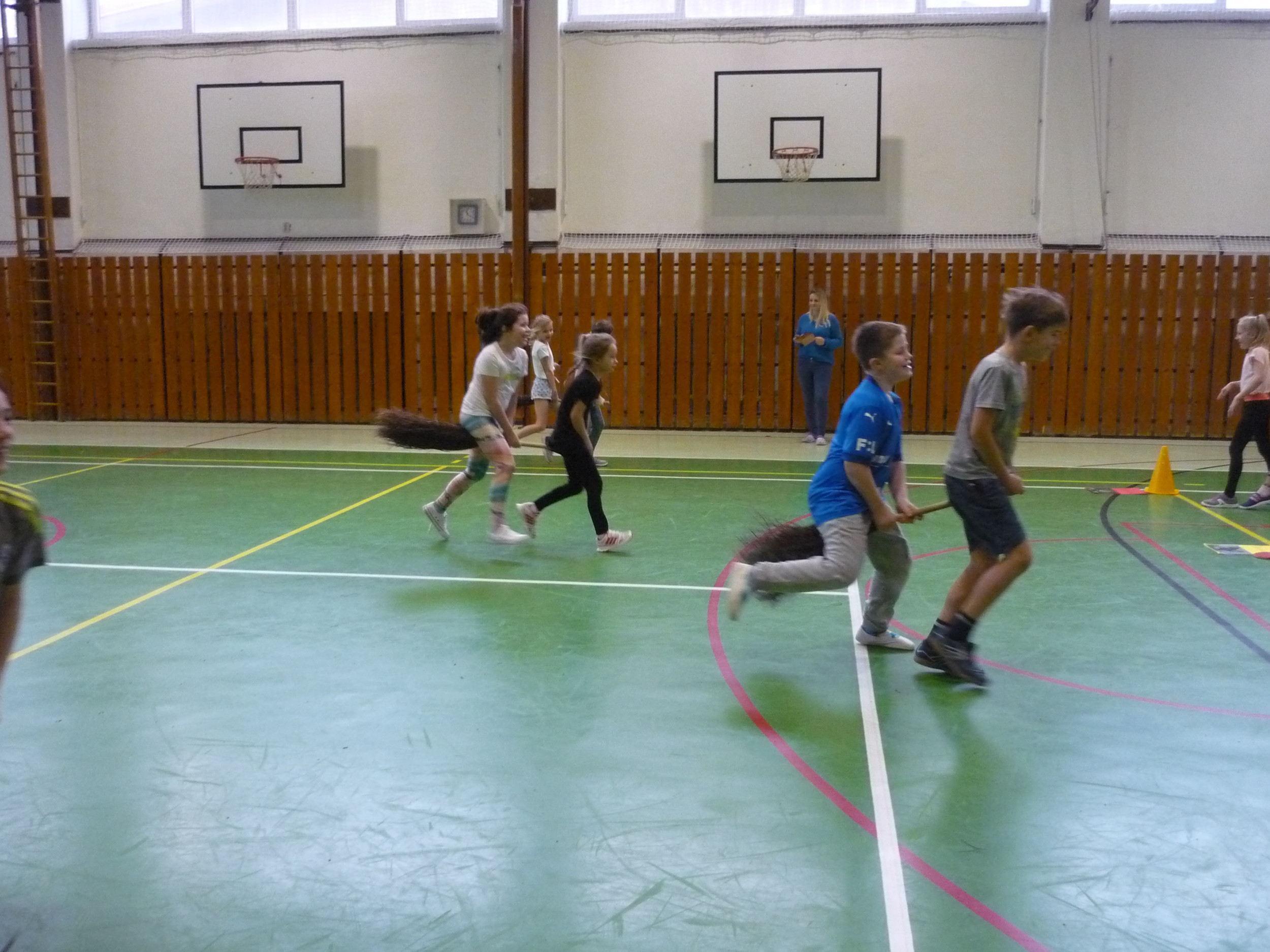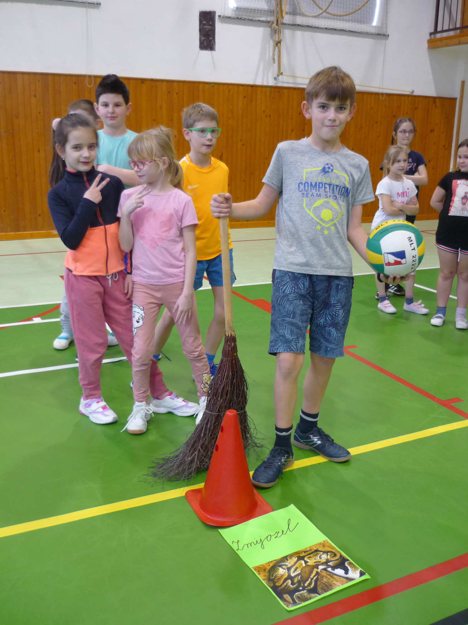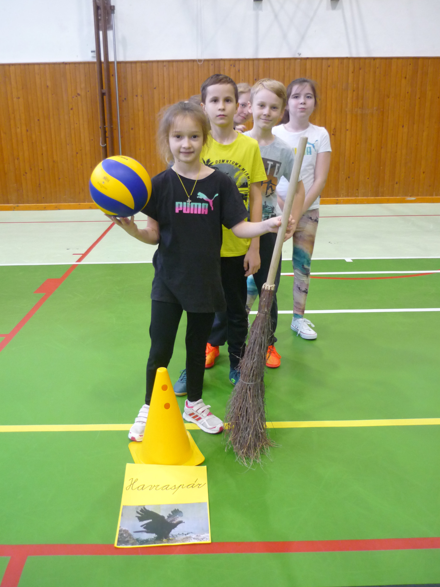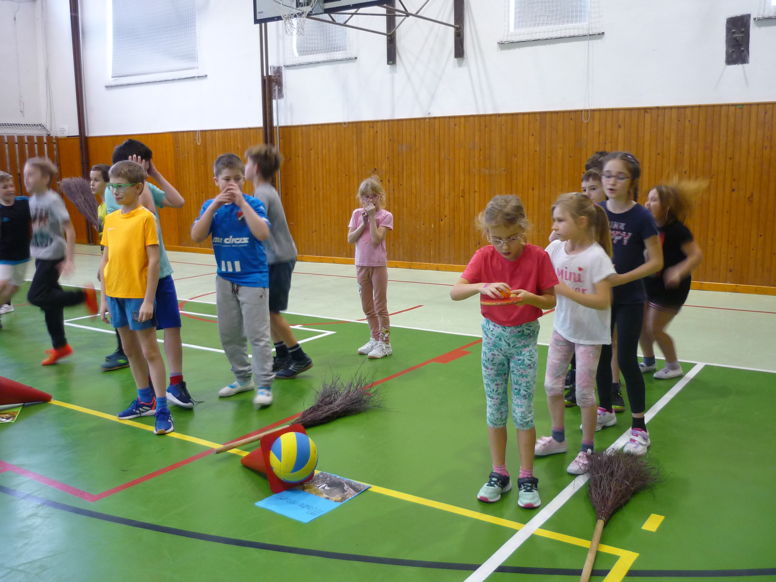 V den předávání vysvědčení v tělocvičně soutěžily čtyři bradavické koleje: Nebelvír, Havraspár, Zmijozel a Mrzimor. Kouzelný klobouk spravedlivě rozdělil žáky 3. třídy do družstev a už se soutěžilo v různých sportovních disciplínách. Let na koštěti byl na řadě jako první. Nemohla chybět ani soví pošta s Hedvikou. Všichni si to náramně užili, žáci i paní učitelka Kamila a paní vychovatelka Simona, které program pro děti připravily.