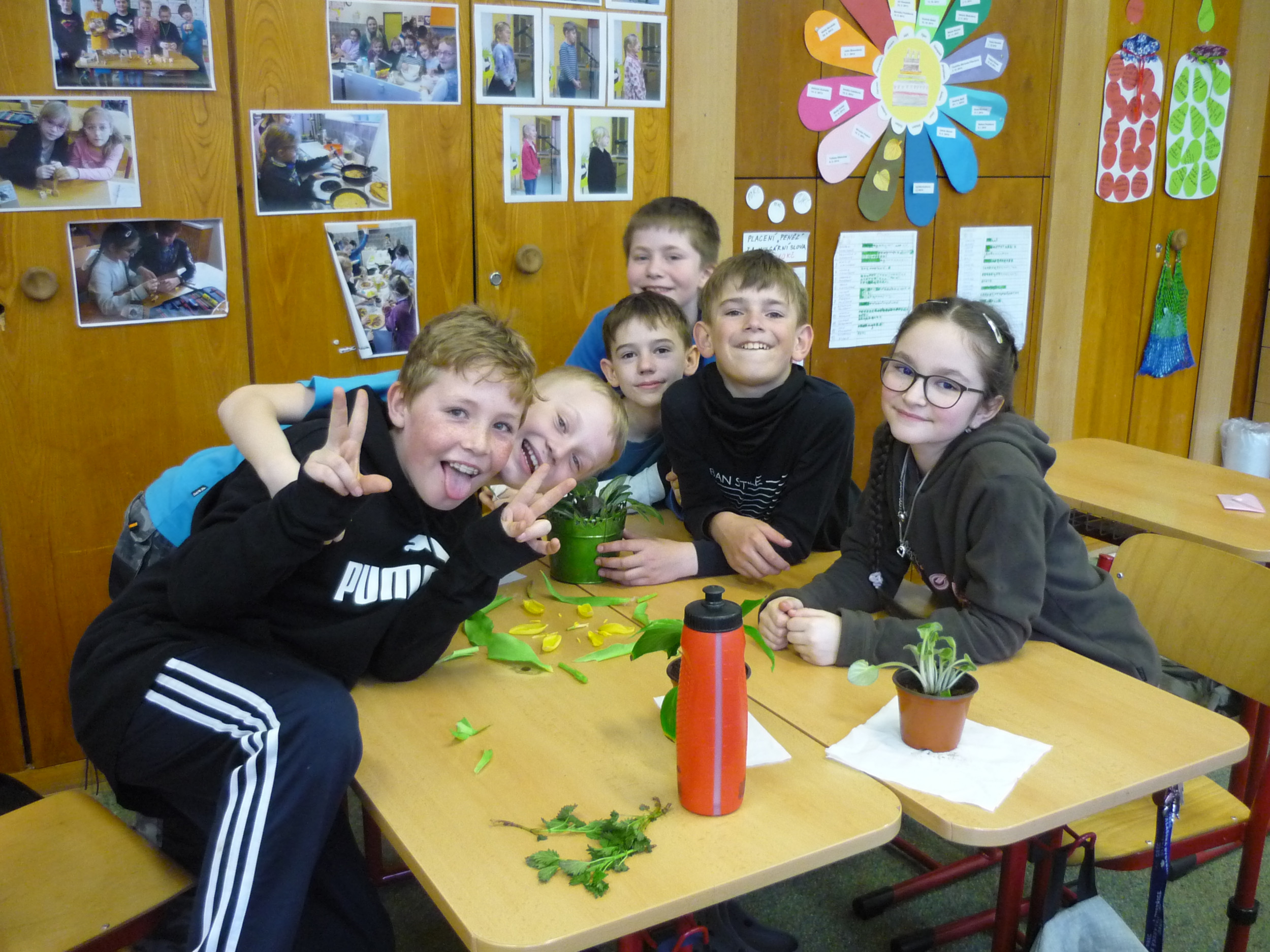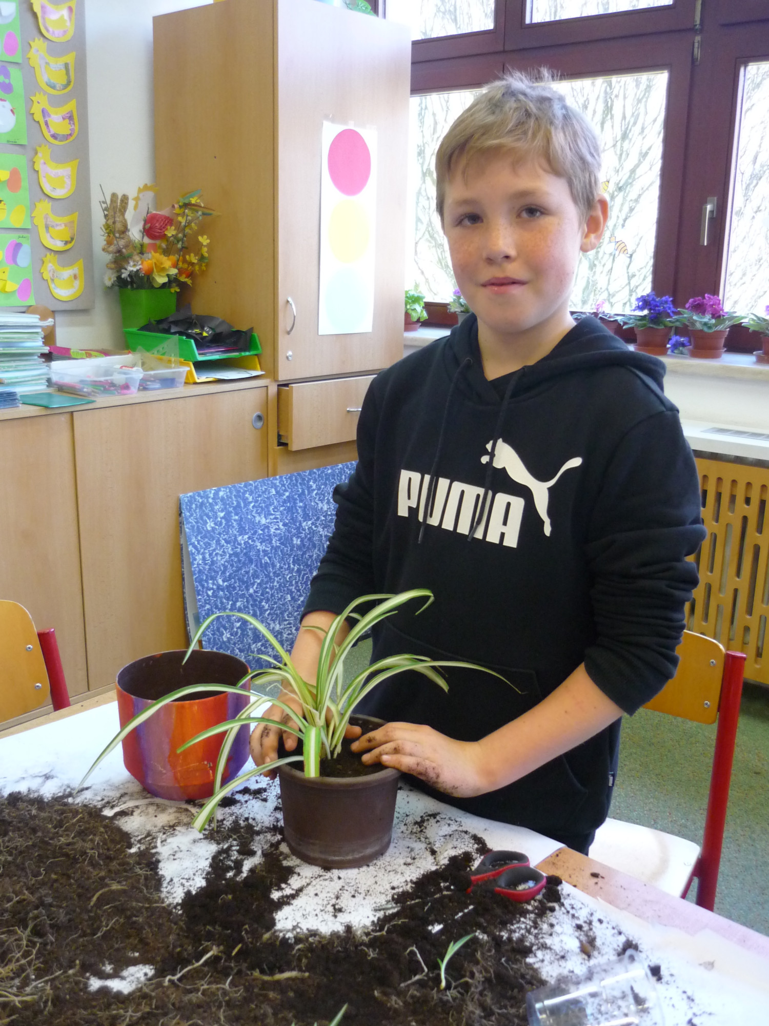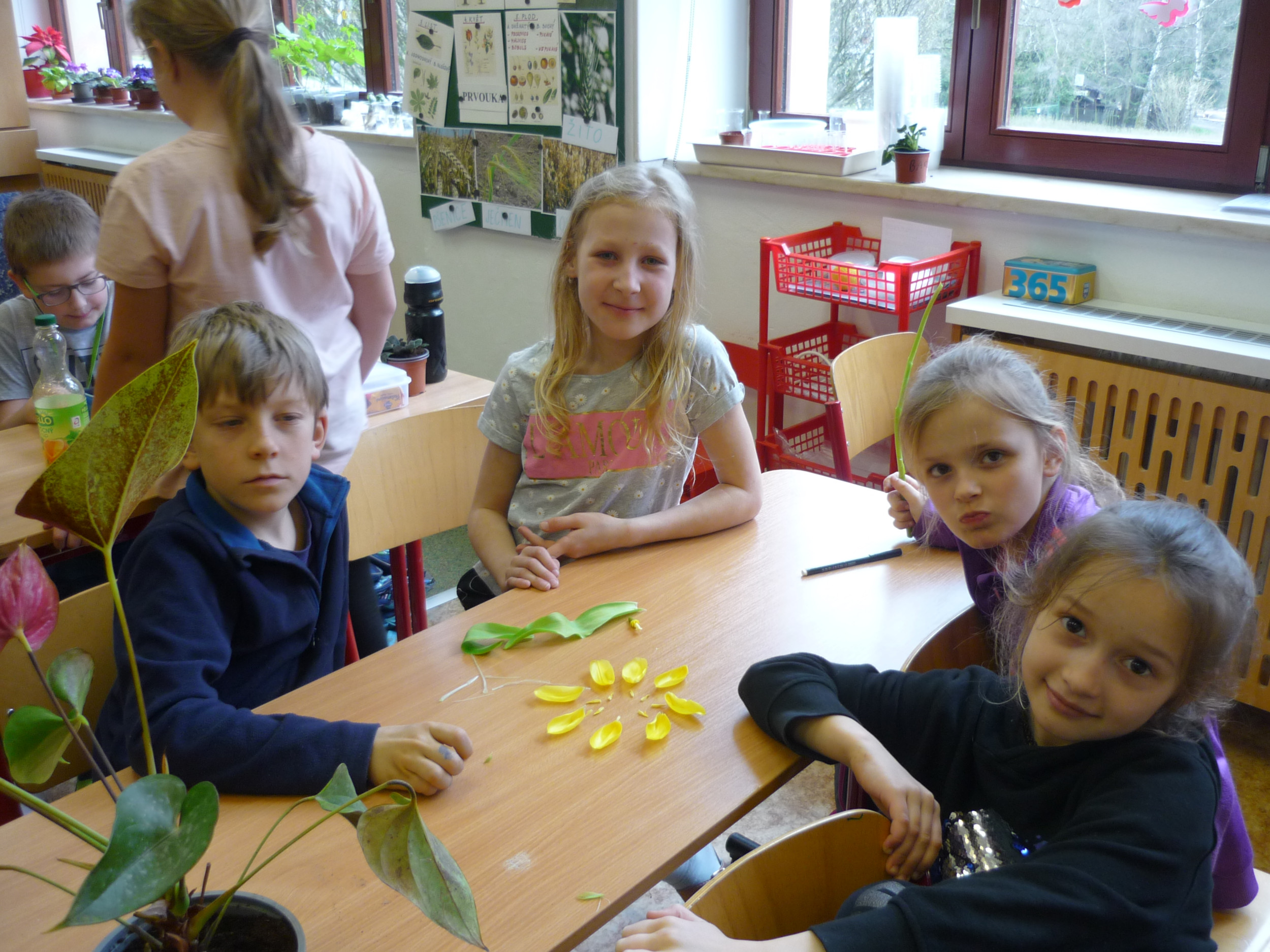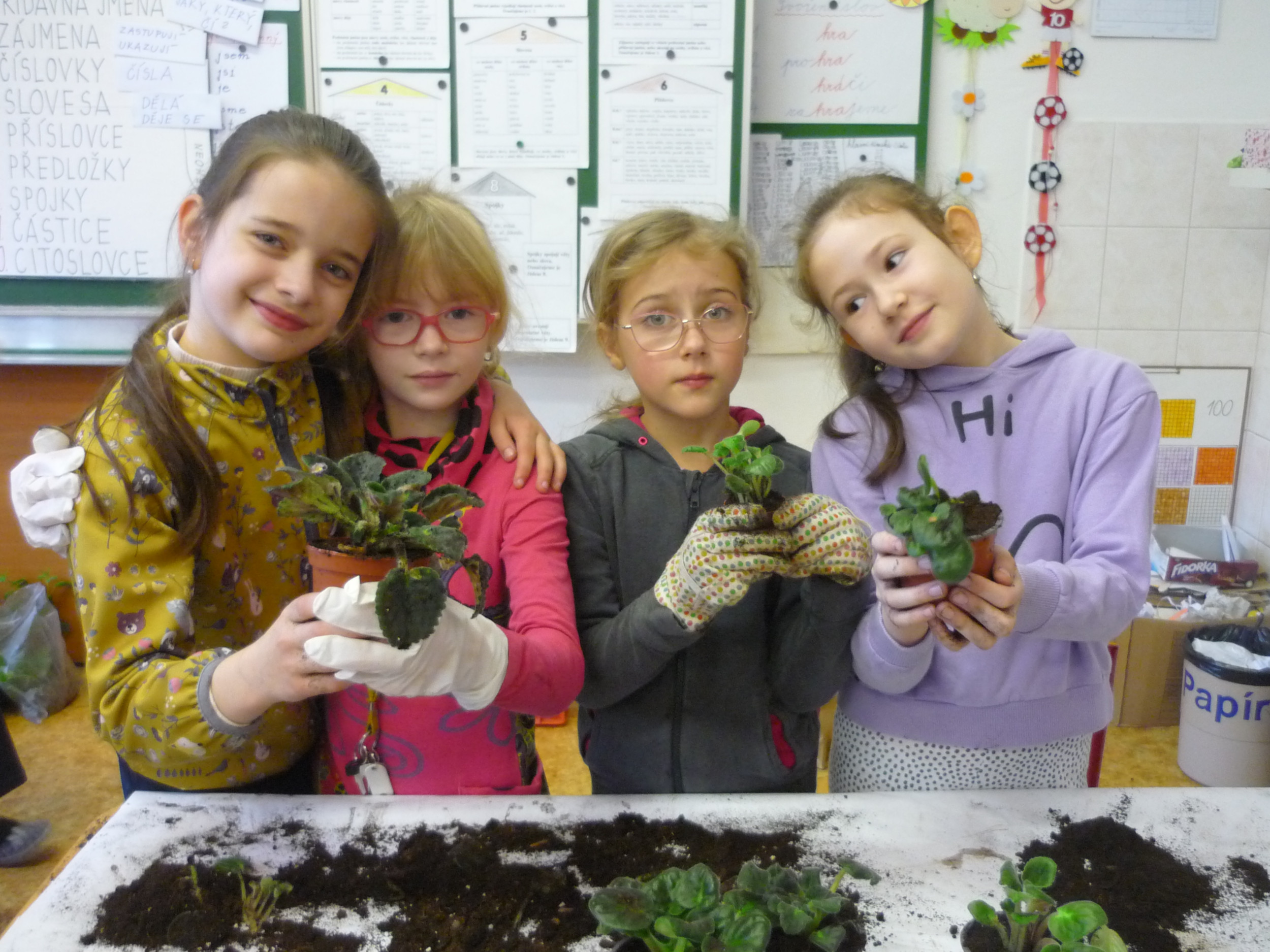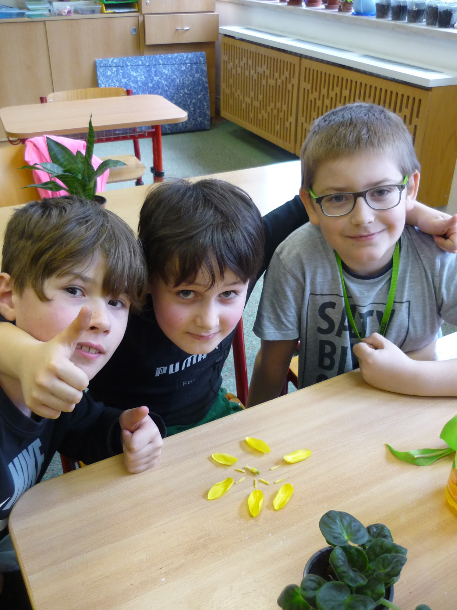 V pátek 21. dubna se žáci 3. třídy těšili na Květinový den. Hned ráno si z přinesených rostlin udělali výstavku, kterou doplnili jejich názvy. Potom se všichni pustili do přesazování pokojových rostlin. Na školním pozemku děvčata i chlapci zaseli hrách a ředkvičku, také zasadili narcisy, petrklíče, rozchodník, z léčivek mátu a meduňku. Z nasbíraných kopřiv a sedmikrásek si pak uvařili dobrý čaj. Domů všichni odcházeli s úsměvem a s kytkou v květináči.