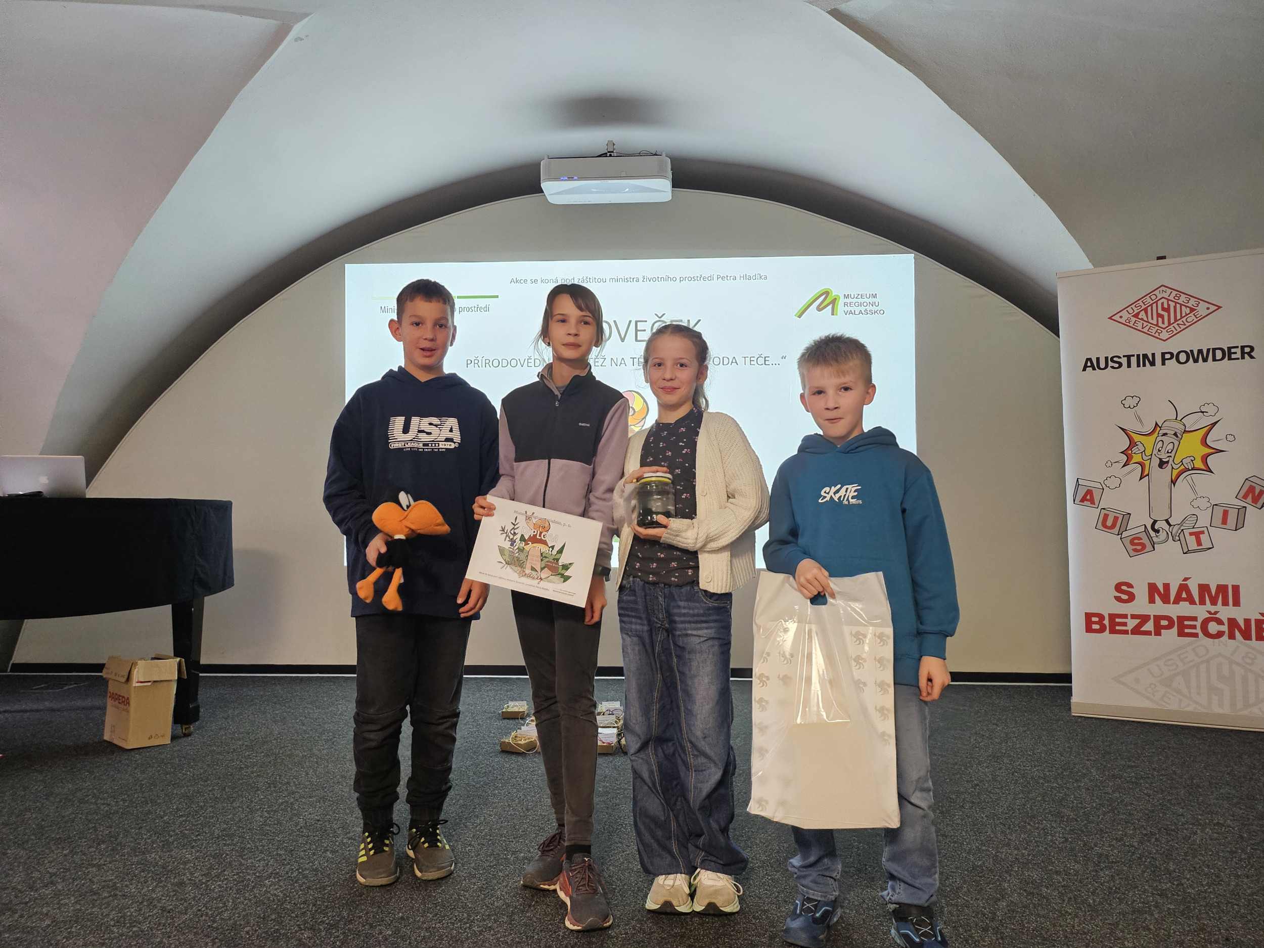 „Když voda hučí, Valach se modlí.“ Znáte toto valašské úsloví? Naši starší žáci jej slyšeli poprvé až na přírodovědné soutěži Jaloveček, které jsme se již tradičně zúčastnili na zámku Vsetín. Během dvou dnů zde v týmech soutěžili žáci 1. i 2. stupně. Motivační přednáška, test, badatelské úkoly i výroba náhrdelníku ze skleněného oblázku z bývalých vsetínských skláren dopadly skvěle a naši žáci se tak mohli postavit na stupně vítězů: Tomáš H., Eliška M., Vendula M. a Štěpán P. za první stupeň vybojovali 2. místo z 21 týmů a Kamila O., Šimon Š., Lukáš K. a Šimon Š. dovezli 3. místo z 20 týmů. Velmi Vám děkujeme za skvělou reprezentaci školy a gratulujeme!