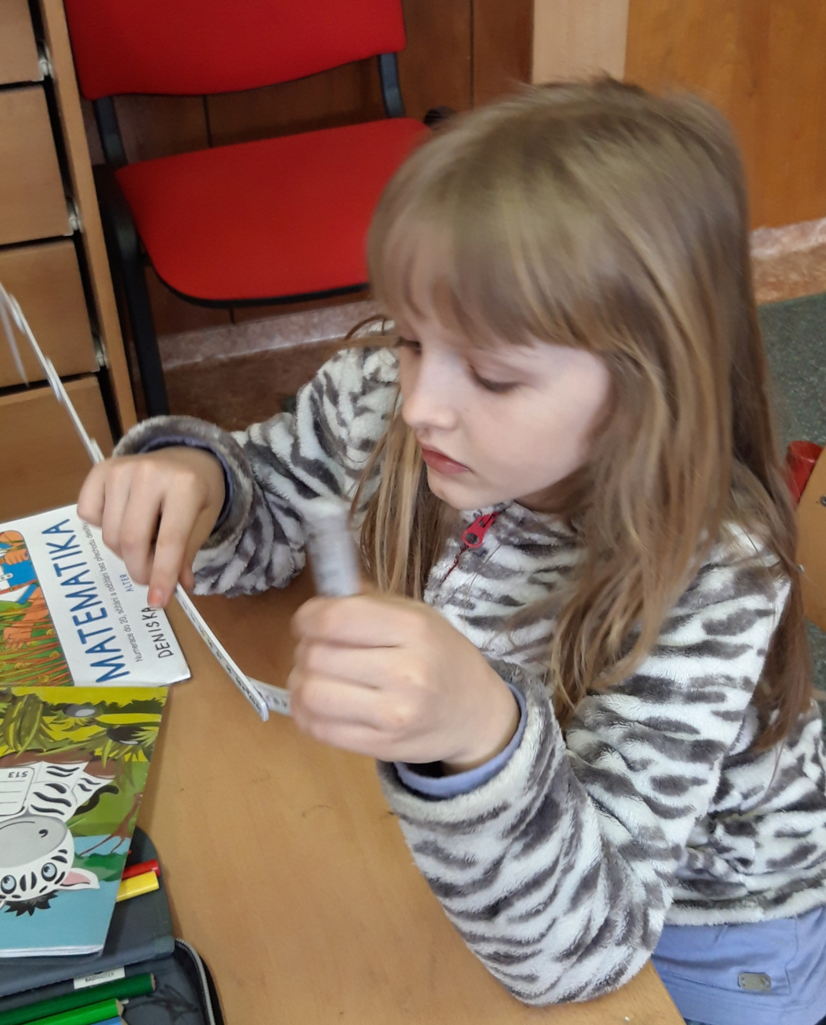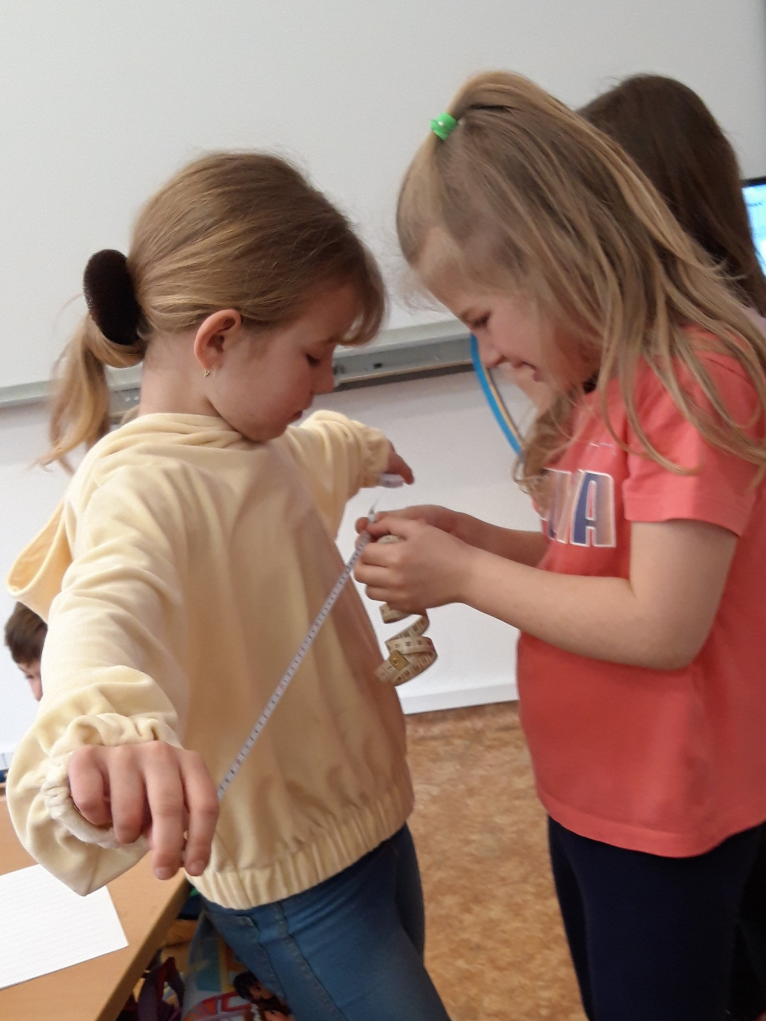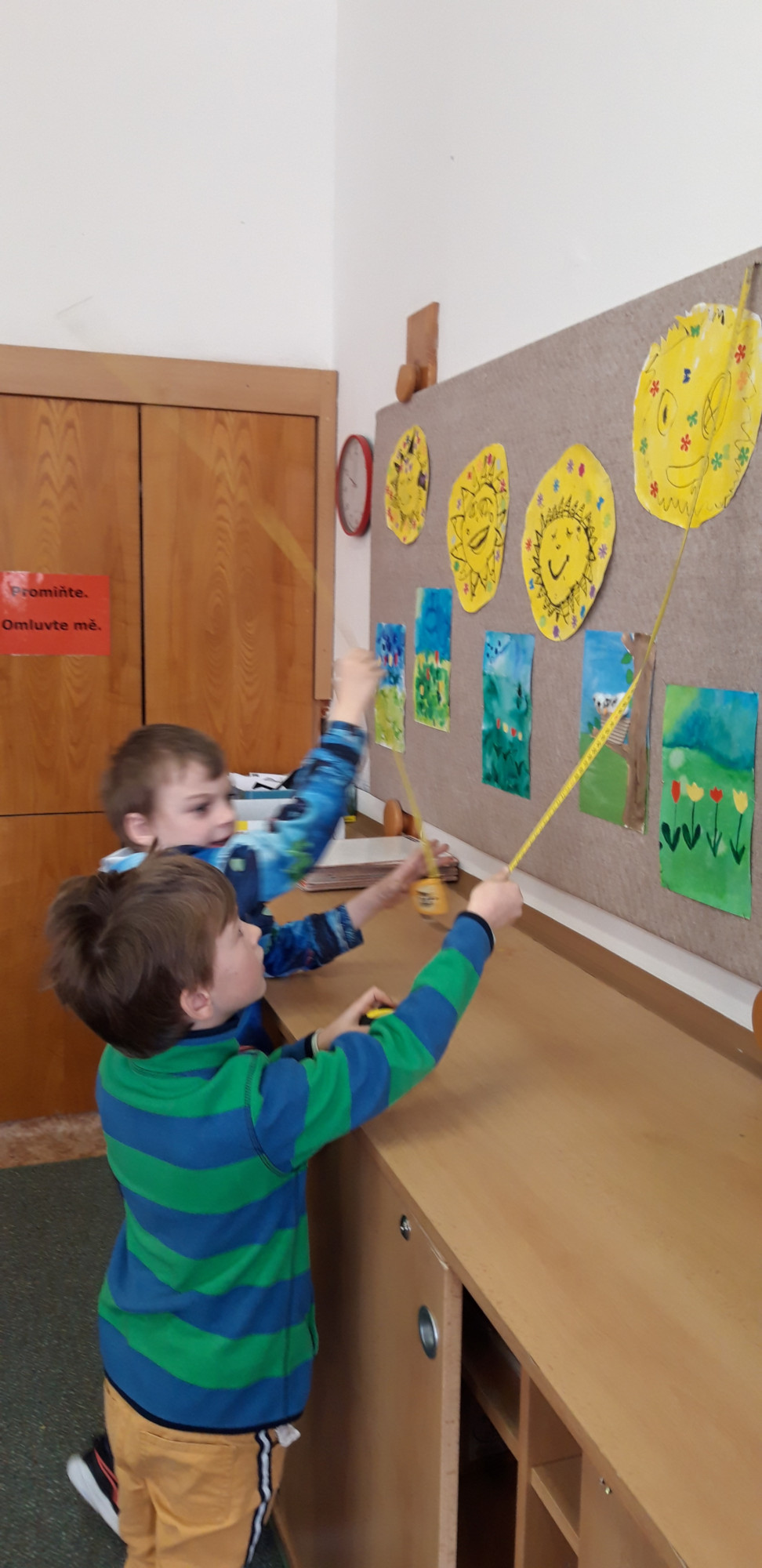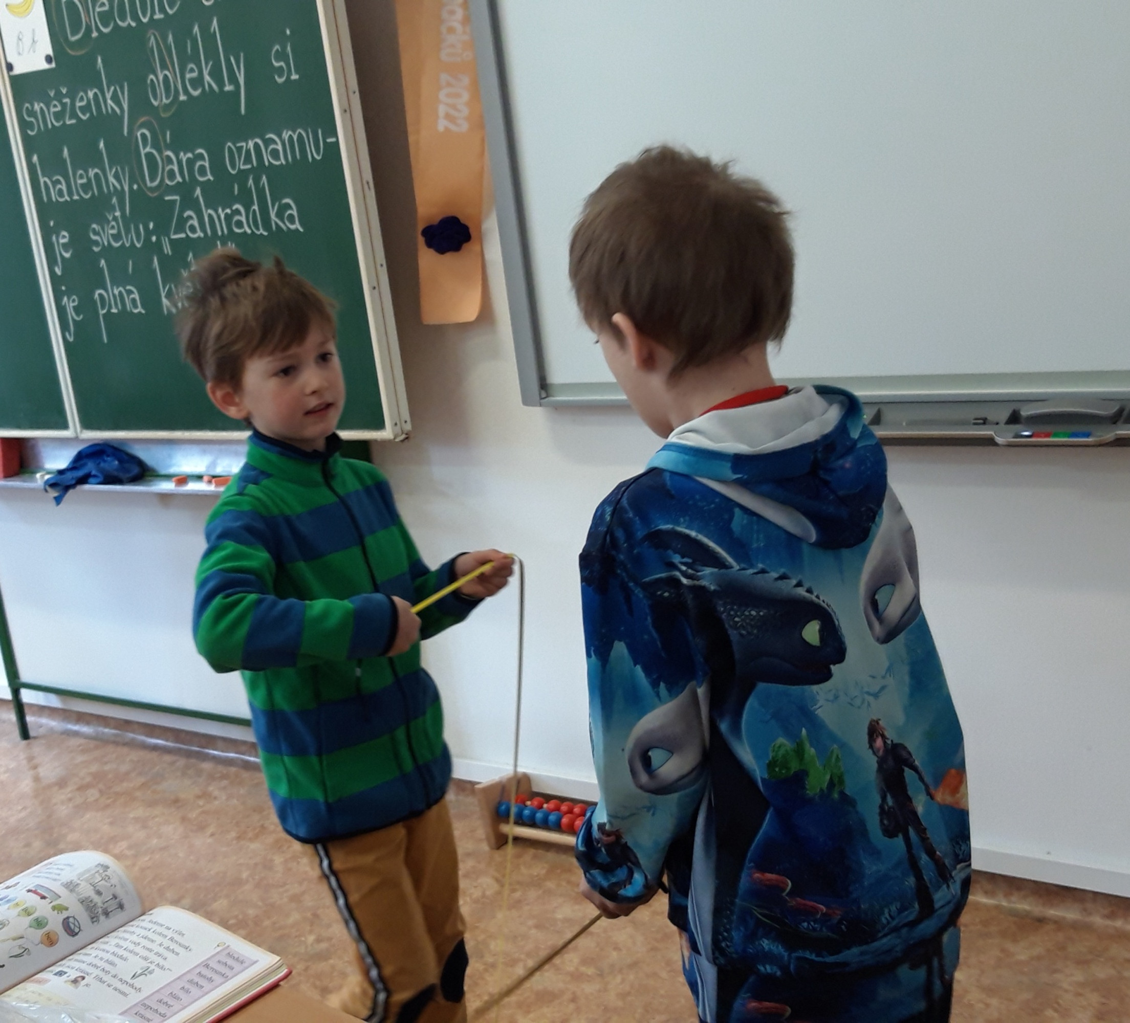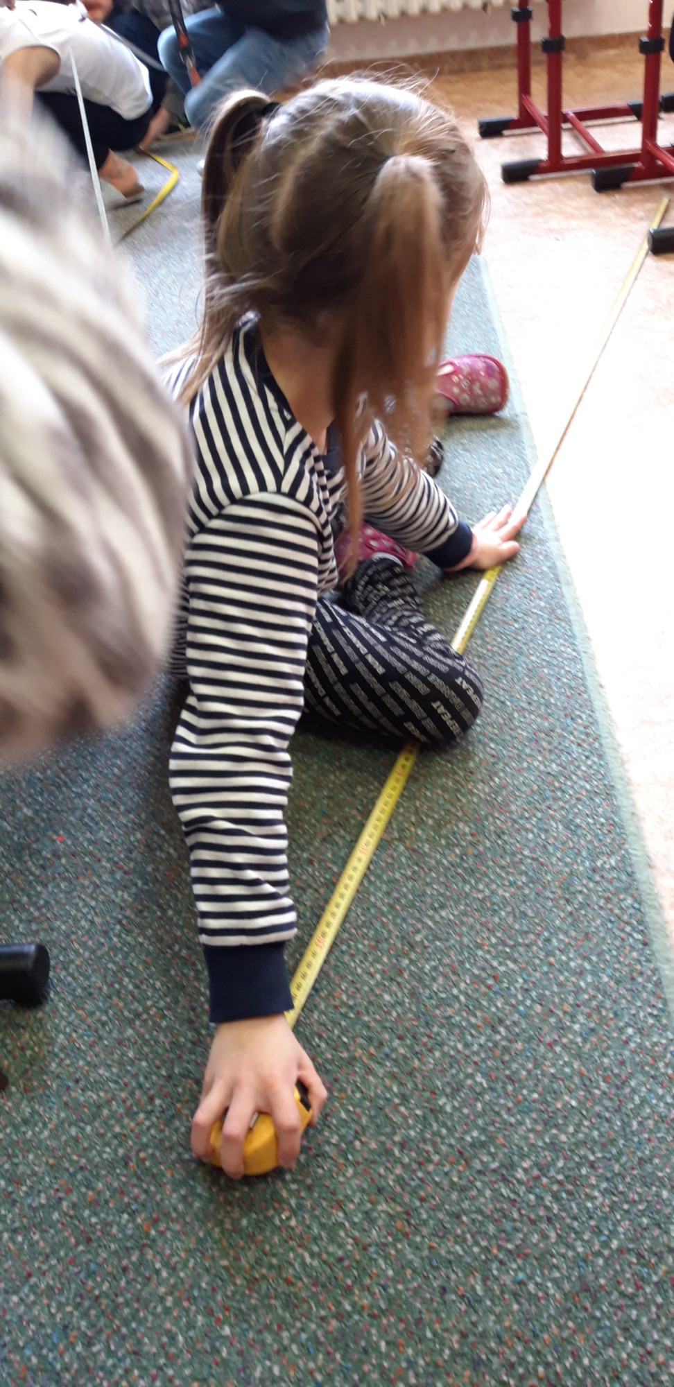 Prvňáčci se v průběhu března seznamovali s délkovou mírou. Měřili různými typy metrů a to jak ve třídě tak ale i venku. Zkusili změřit například: délku třídy, lavice, učebnice, kroku a nebo vlastního hodu kriketovým míčkem.