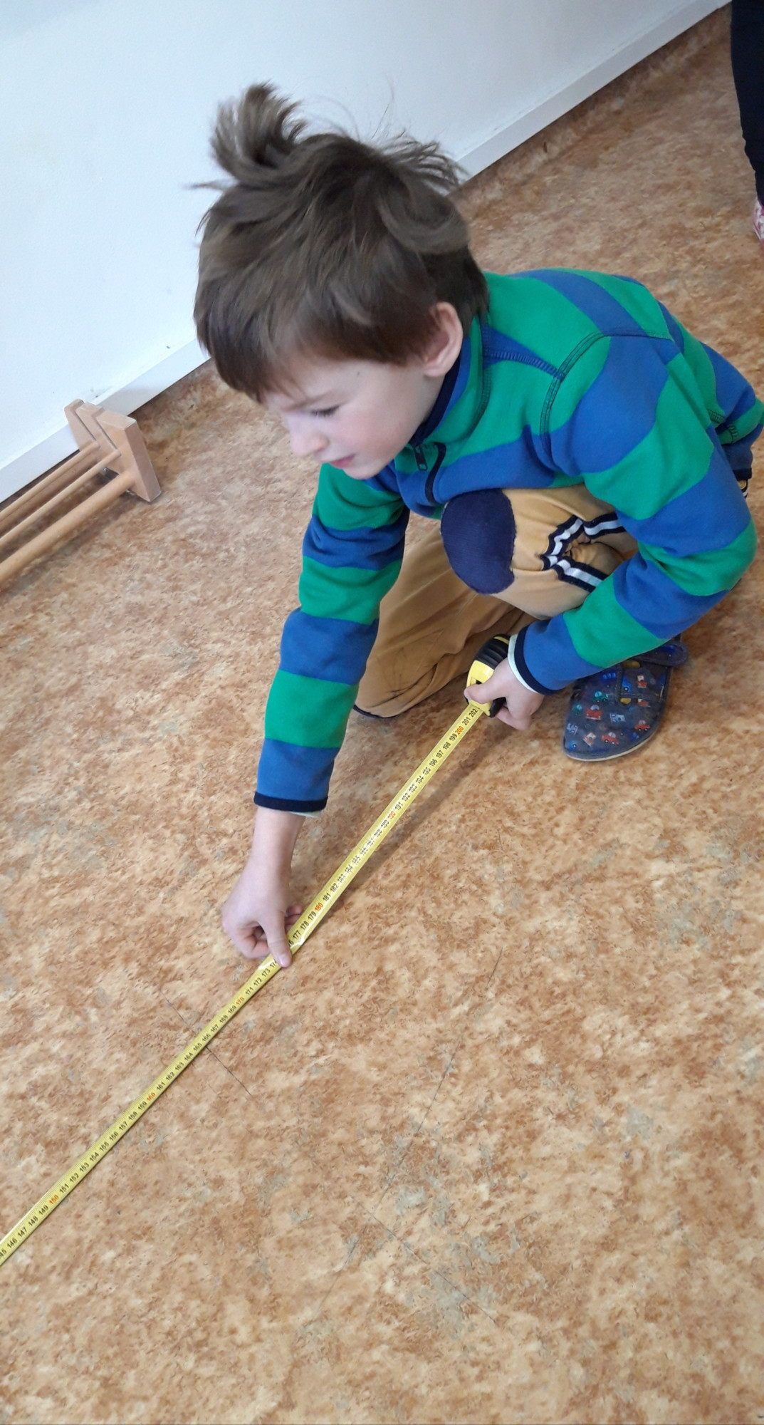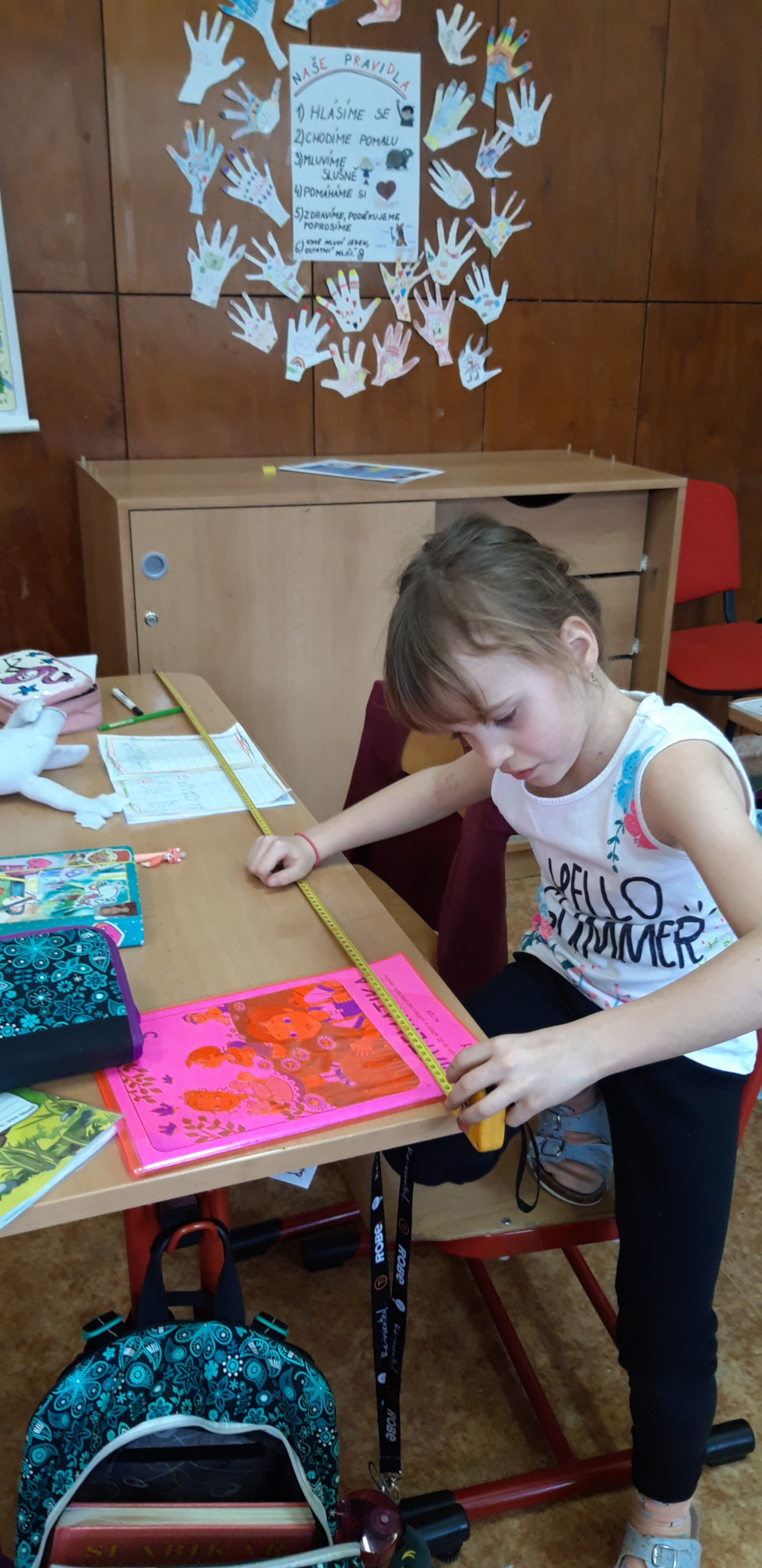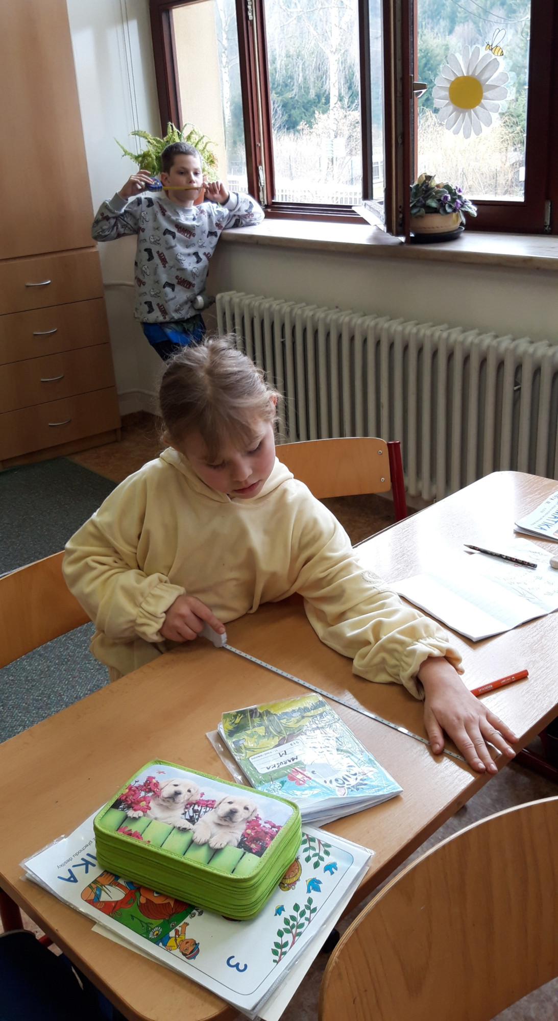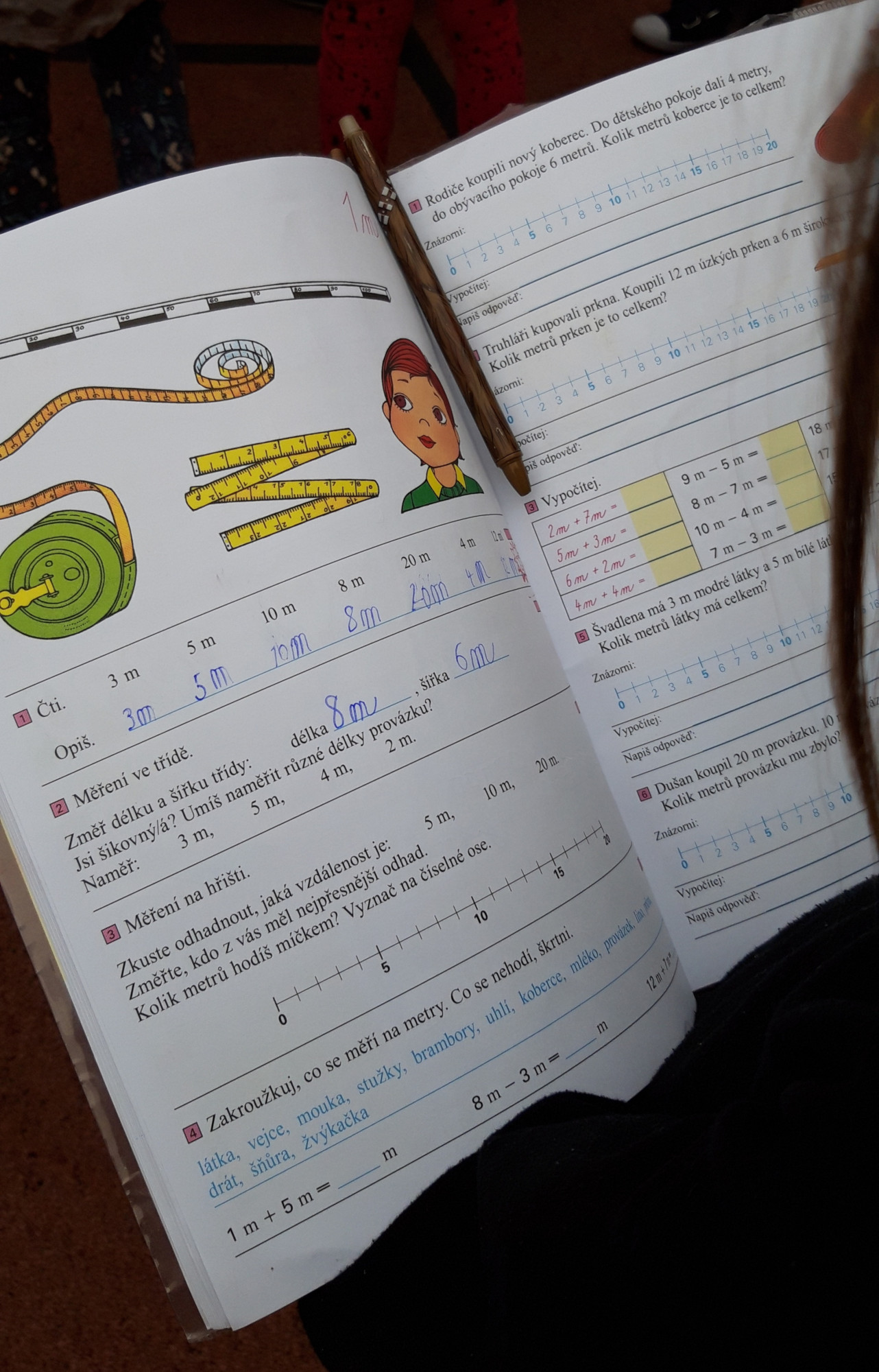 Prvňáčci se v průběhu března seznamovali s délkovou mírou. Měřili různými typy metrů a to jak ve třídě tak ale i venku. Zkusili změřit například: délku třídy, lavice, učebnice, kroku a nebo vlastního hodu kriketovým míčkem.