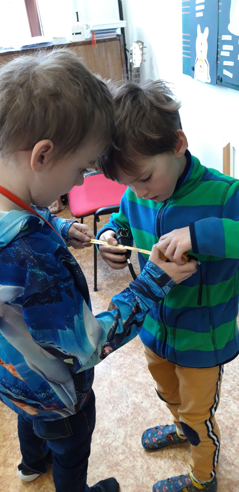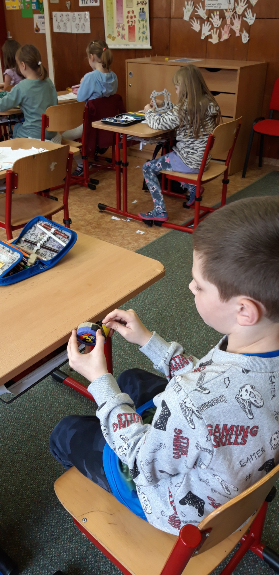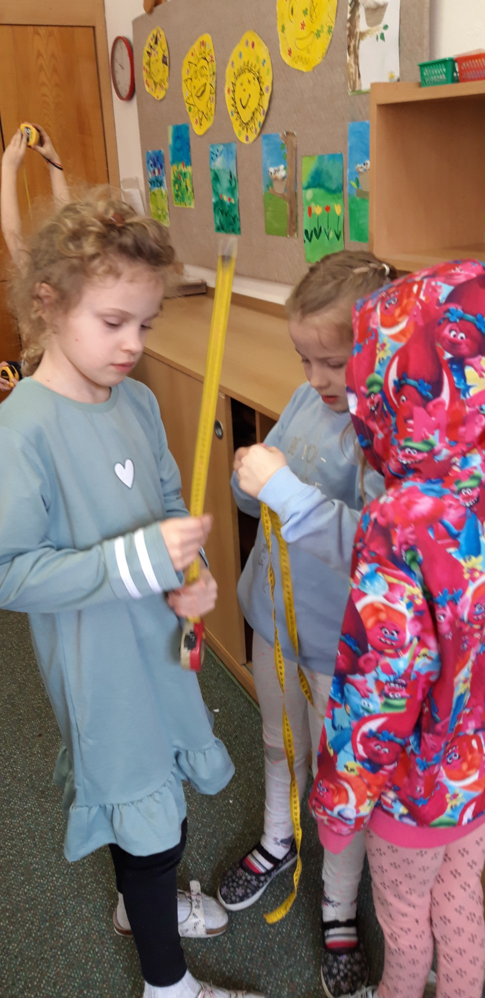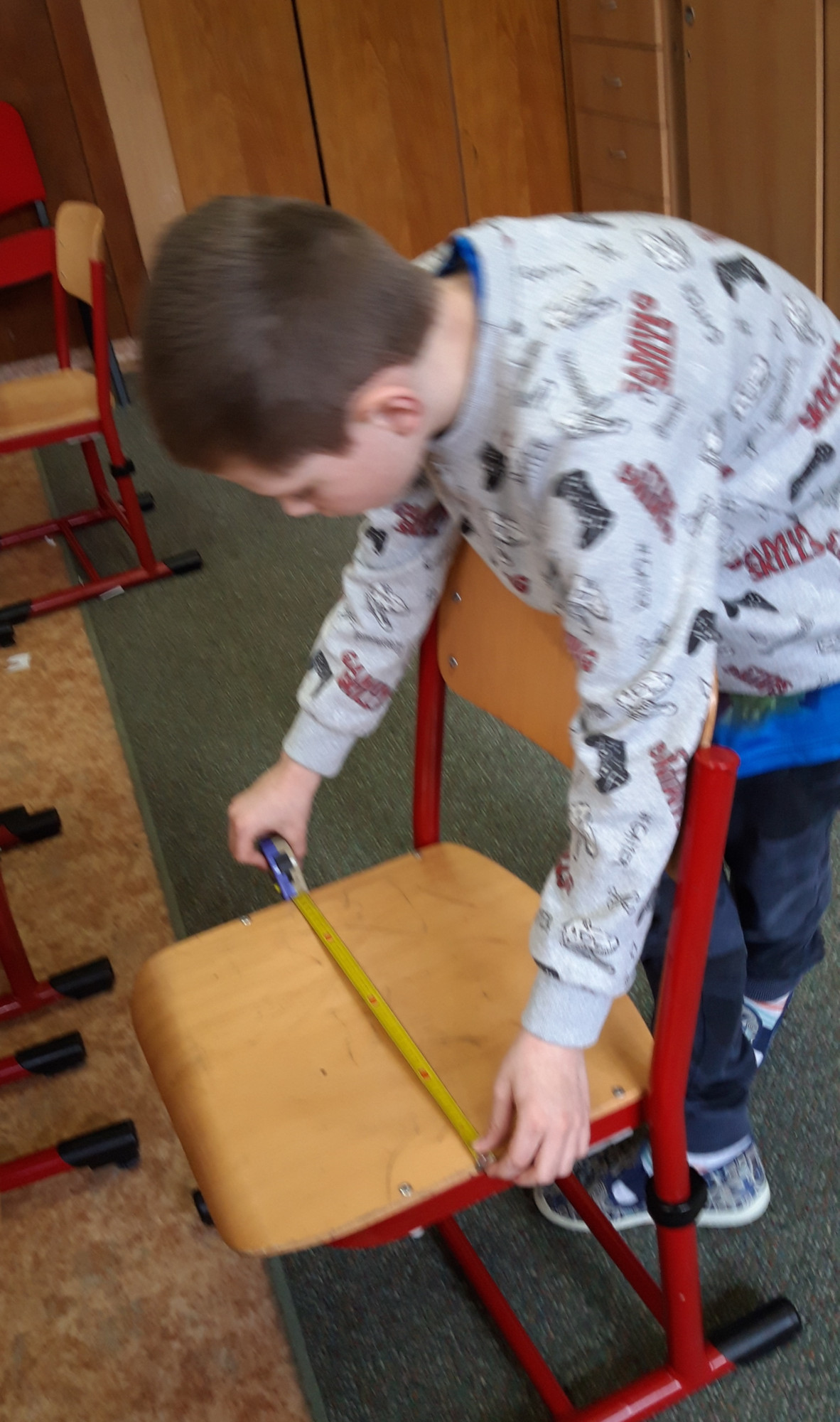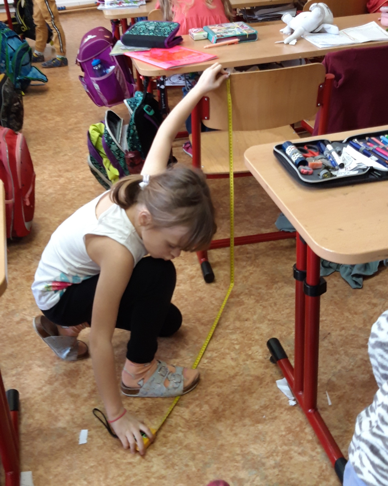 Prvňáčci se v průběhu března seznamovali s délkovou mírou. Měřili různými typy metrů a to jak ve třídě tak ale i venku. Zkusili změřit například: délku třídy, lavice, učebnice, kroku a nebo vlastního hodu kriketovým míčkem.