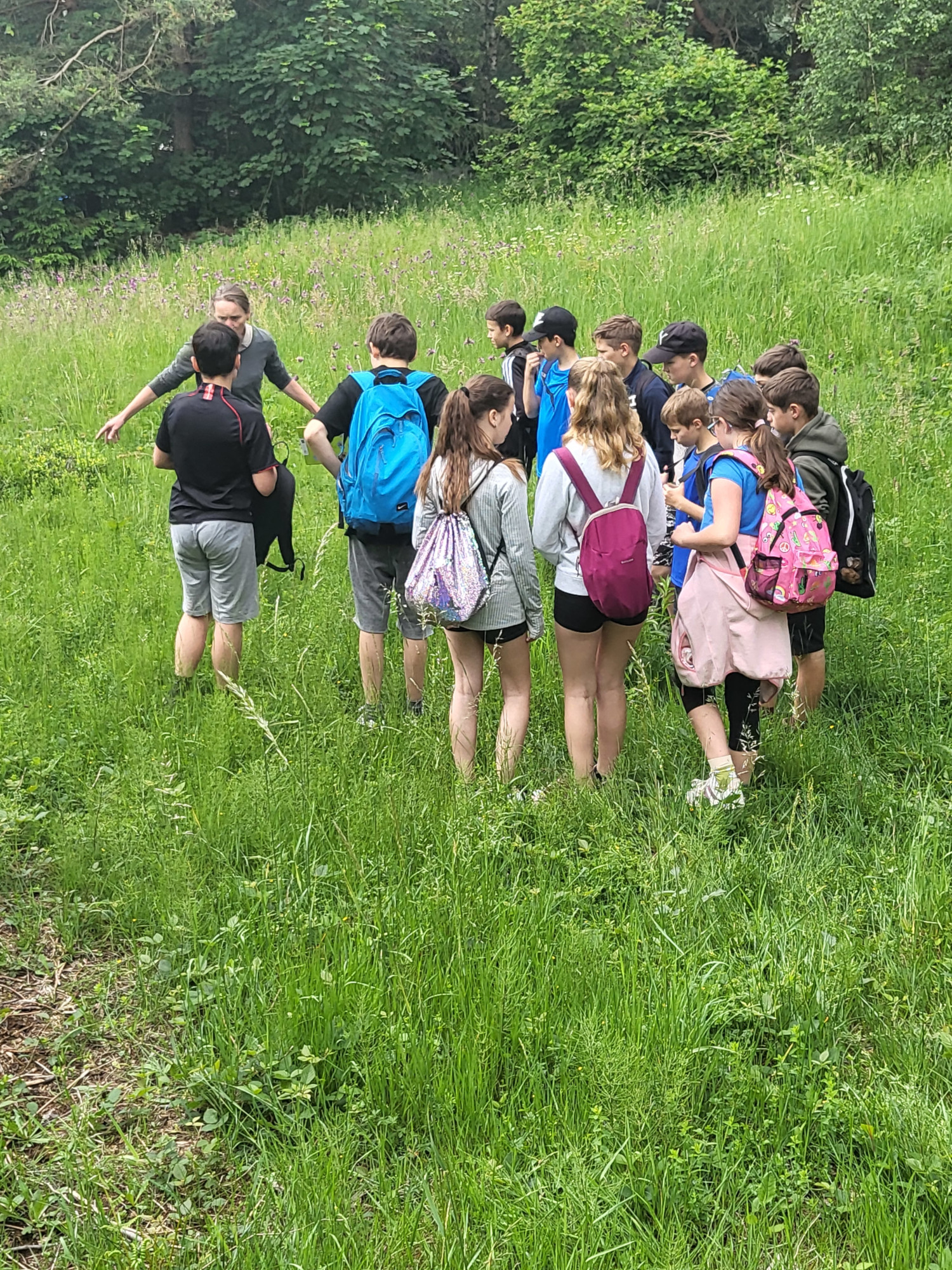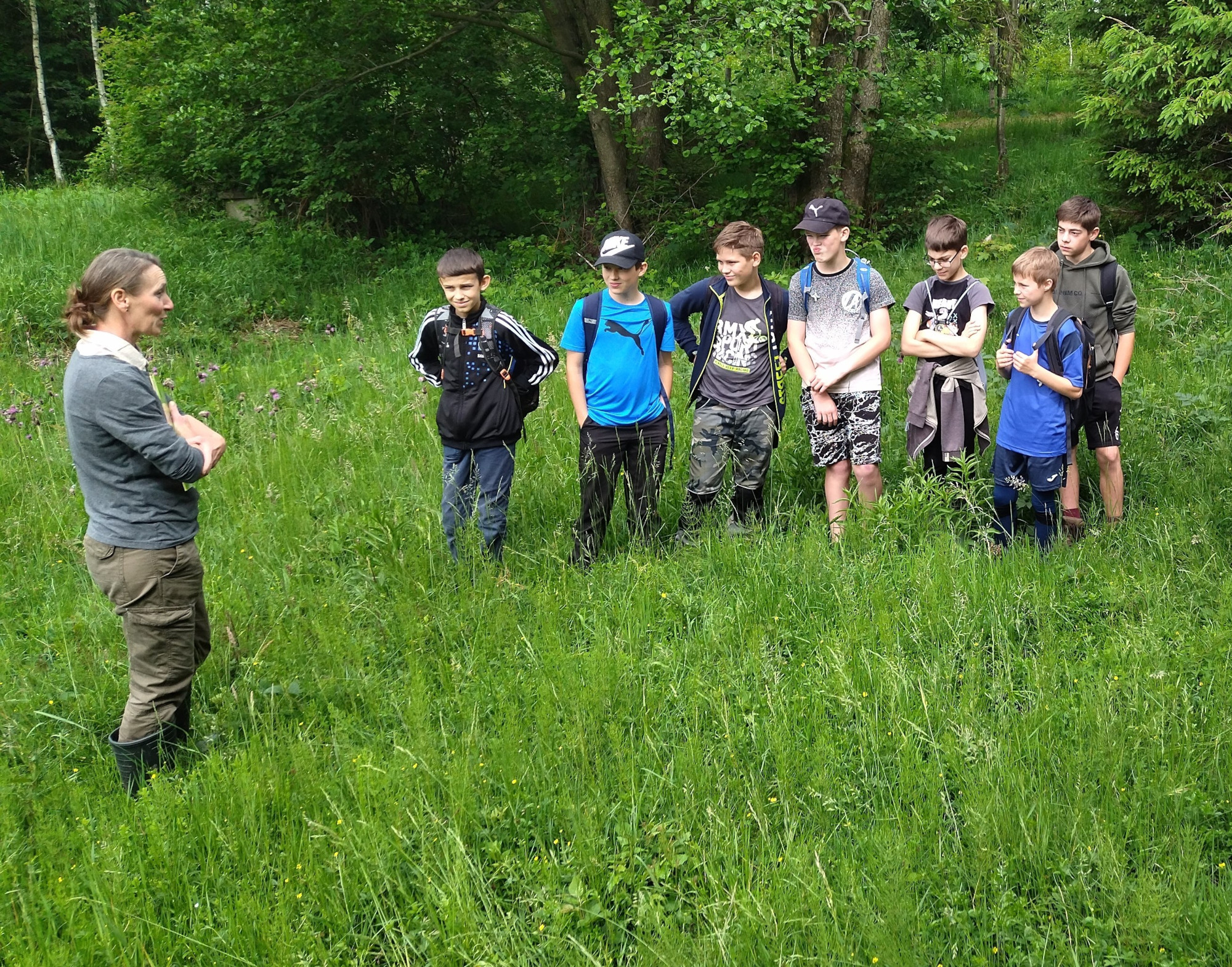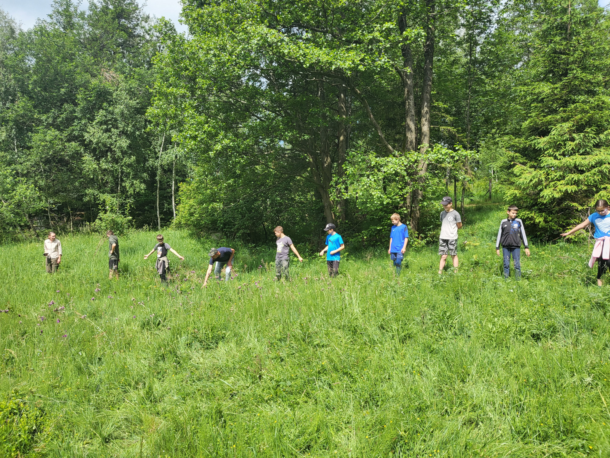 V pátek 7. června jsme se vydali na botanickou exkurzi. Světem rostlin mokřadu, nad kterým drží naše škola patronát, nás provedla botanička CHKO Beskydy Marie Popelářová. Zhodnotili jsme úspěšnost našeho podzimního zásahu a promýšleli jsme, jak se o louku postaráme koncem června. Zkusili jsme si počítání rostlin v terénu a nadchlo nás velké množství ohrožených prstnatců májových na louce (napočítali jsme jich 98 ks).