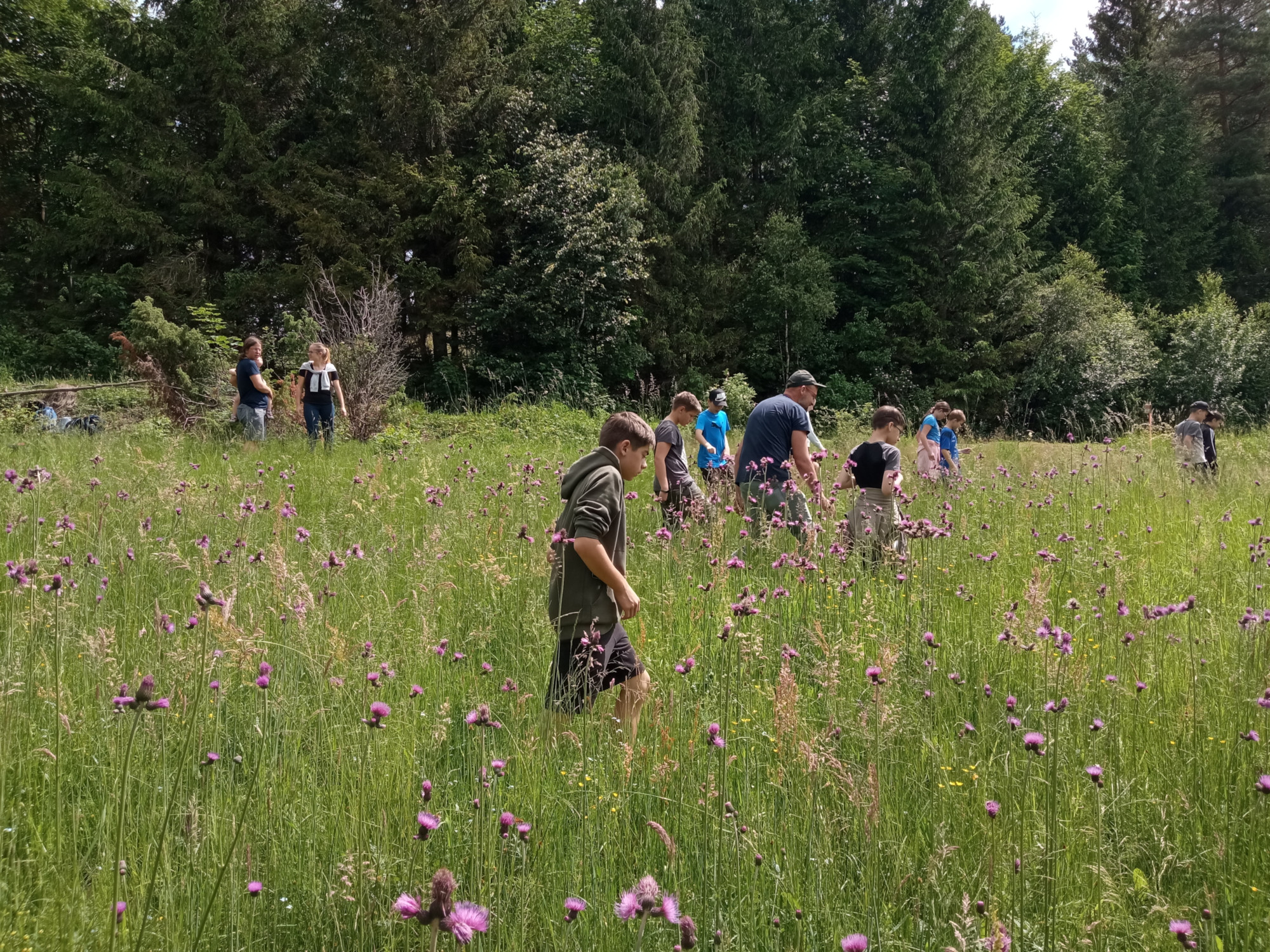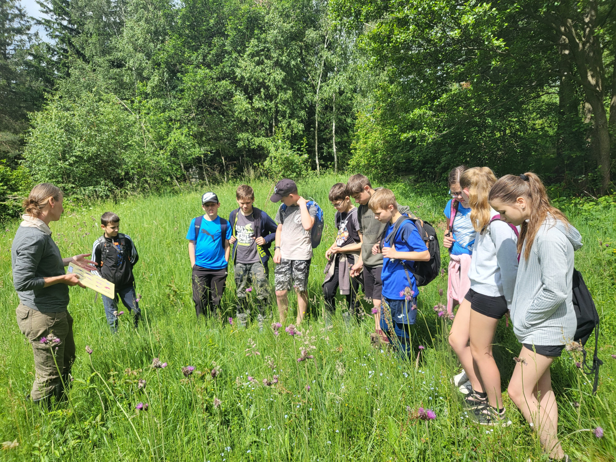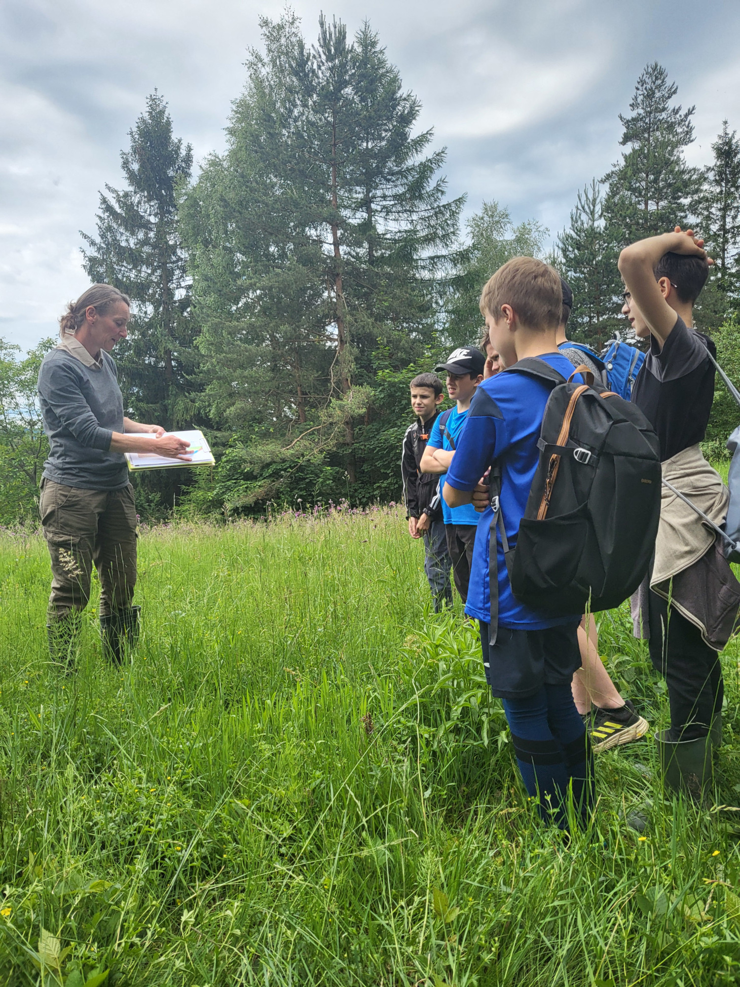 V pátek 7. června jsme se vydali na botanickou exkurzi. Světem rostlin mokřadu, nad kterým drží naše škola patronát, nás provedla botanička CHKO Beskydy Marie Popelářová. Zhodnotili jsme úspěšnost našeho podzimního zásahu a promýšleli jsme, jak se o louku postaráme koncem června. Zkusili jsme si počítání rostlin v terénu a nadchlo nás velké množství ohrožených prstnatců májových na louce (napočítali jsme jich 98 ks).