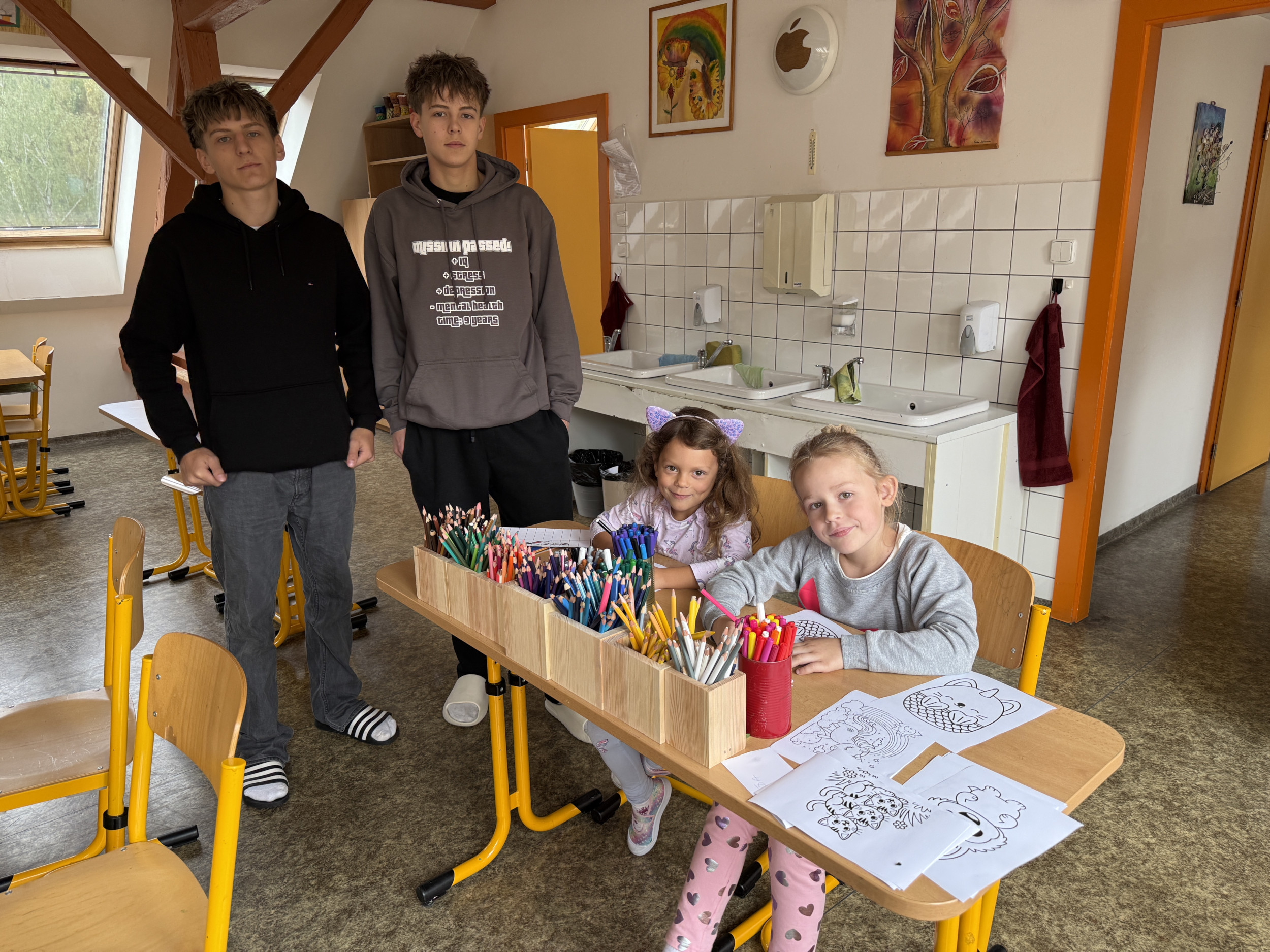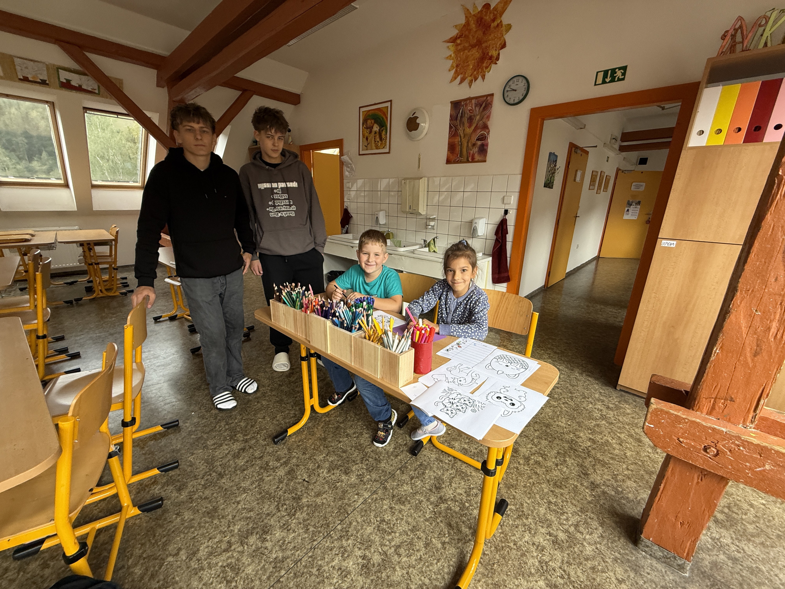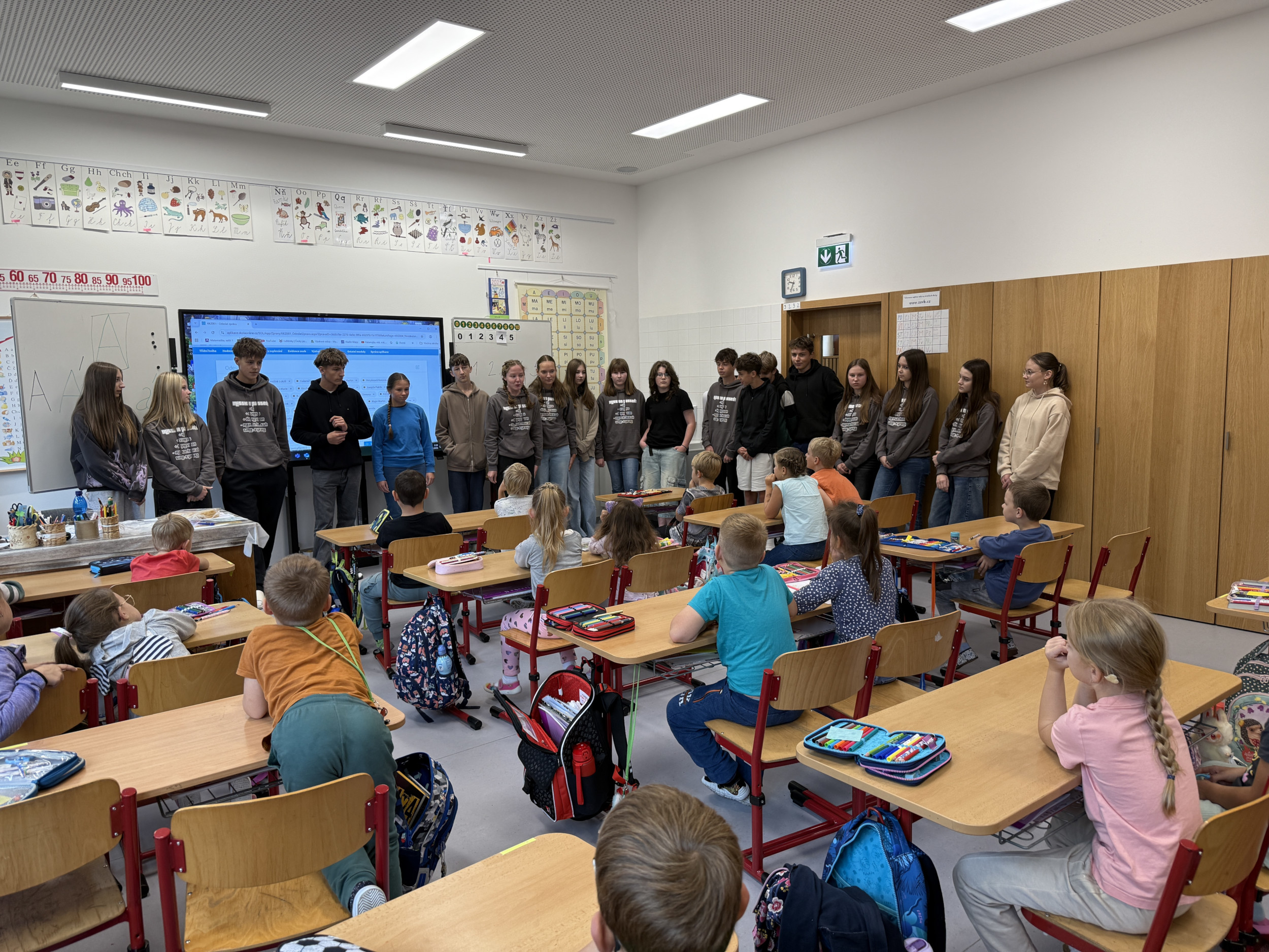 Ve čtvrtek 18. září 2025 si naši deváťáci připravili pro prvňáčky seznámení se školou. Vytvořili sedm stanovišť, na kterých museli prvňáčci plnit různé úkoly, při kterých poznali jednotlivé odborné učebny naší školy. Po splnění všech úkolů odměnili deváťáci své svěřence sladkou odměnou a společnou fotografií s osobním věnováním. Tato akce tak přispěla k dalšímu prohlubování kamarádství našich nejstarších s našimi nejmladšími žáčky.