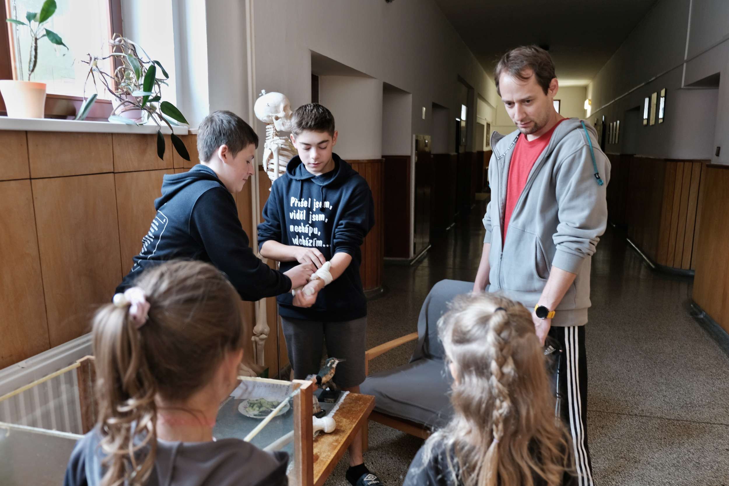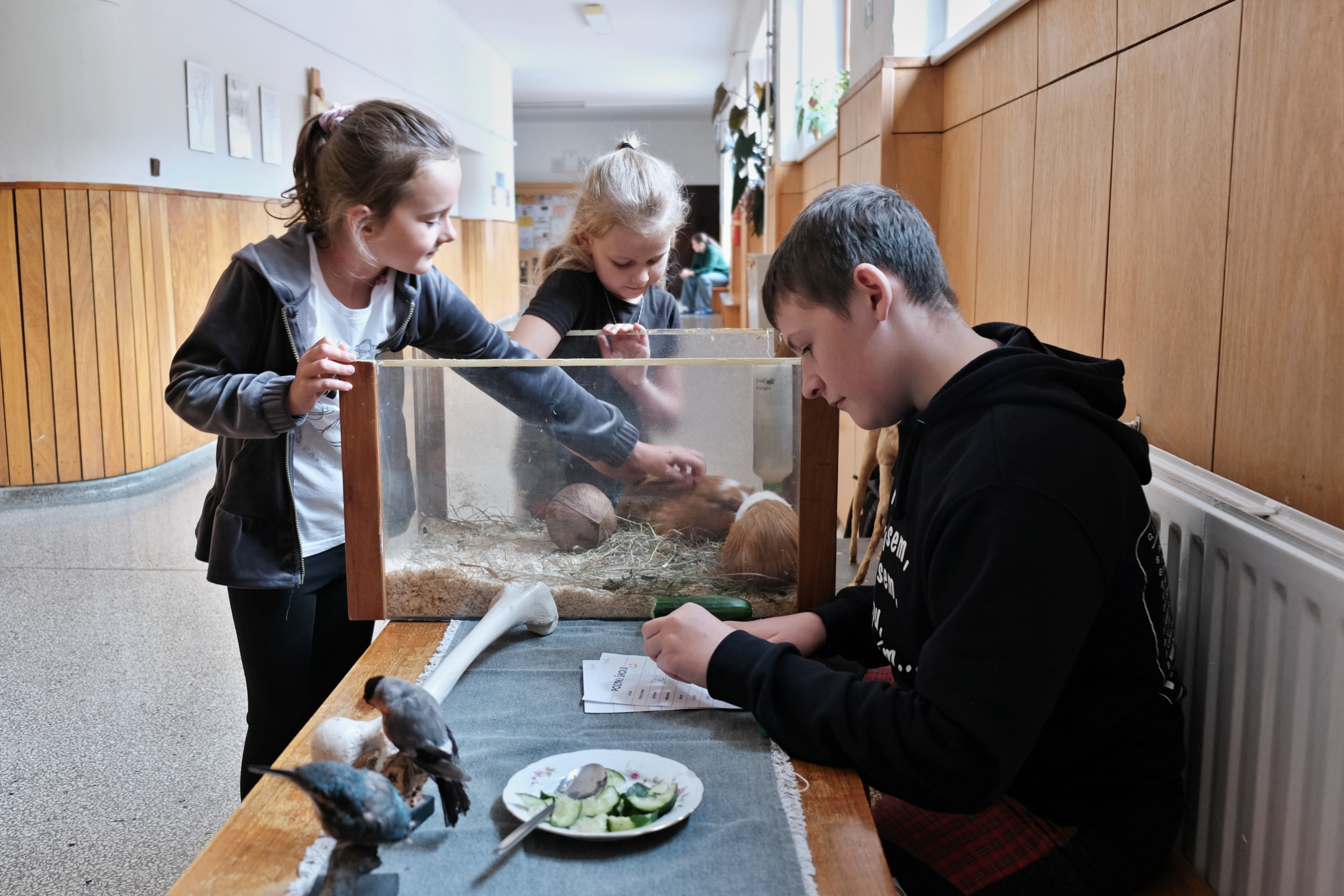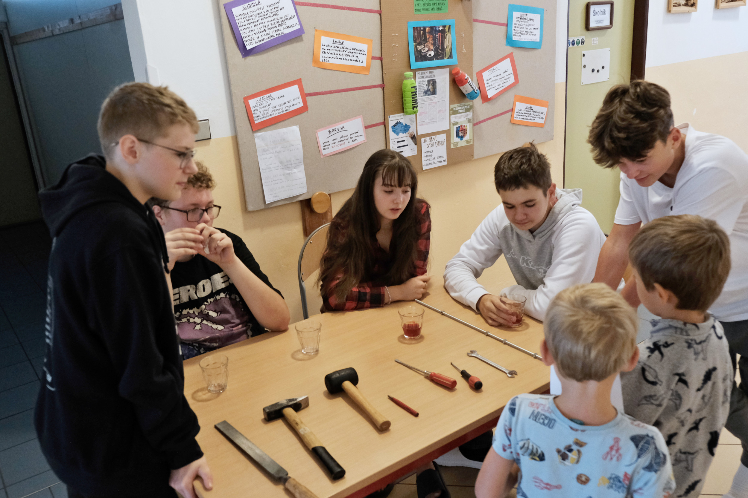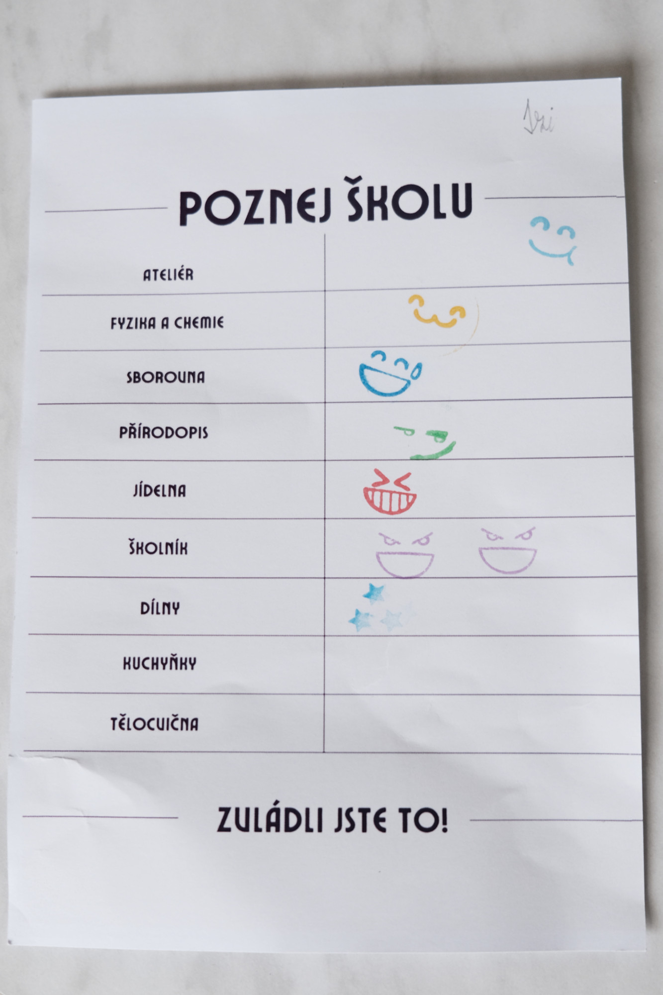 Naši prvňáčci se ve úterý 17. září seznámili s různými částmi naší školy, některé již navštívili při zápise, ale některé pro ně byly nové. Seznamování si pro ně připravili deváťáci, jakožto jejich „patroni“. Připravili si po škole stanoviště se zábavnými úkoly, ať už z oblasti tělocviku, zručnosti, malování či znalostí. Po splnění byli prvňáčci oceněni sladkou odměnou a medailí.