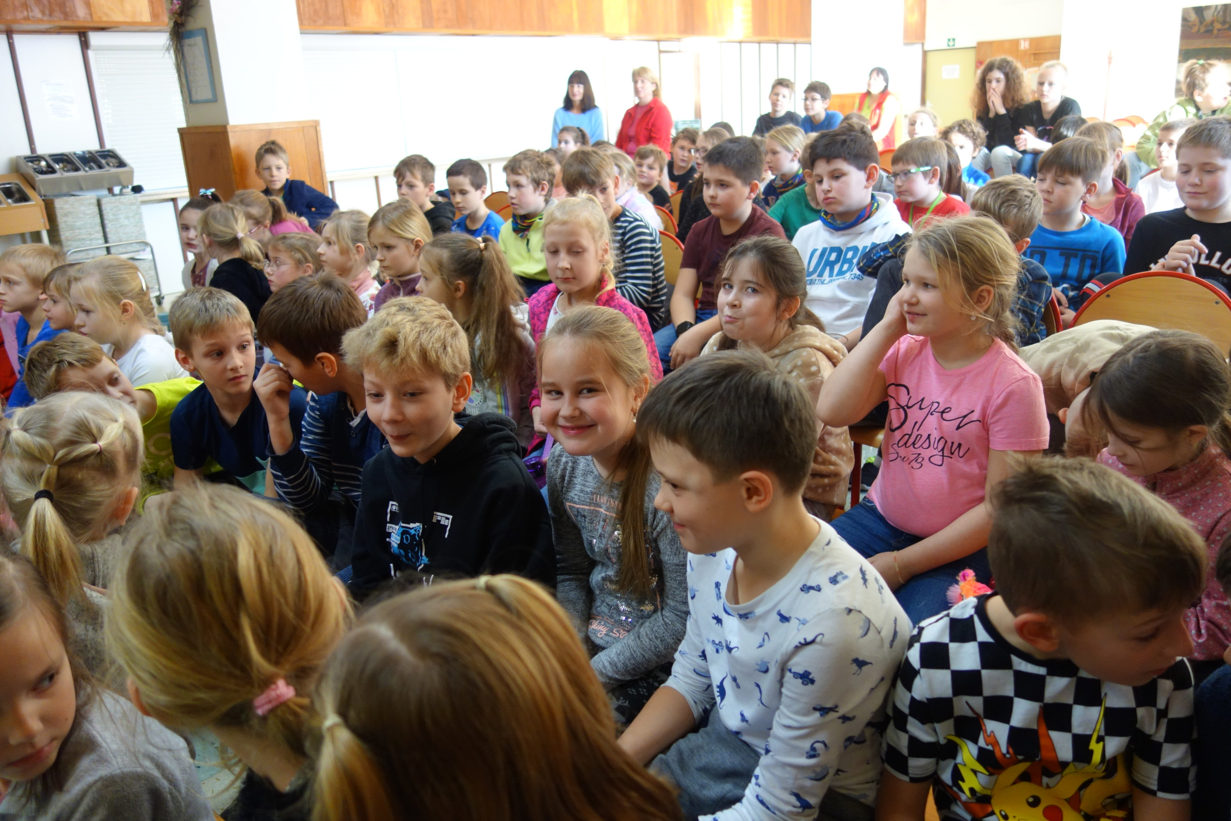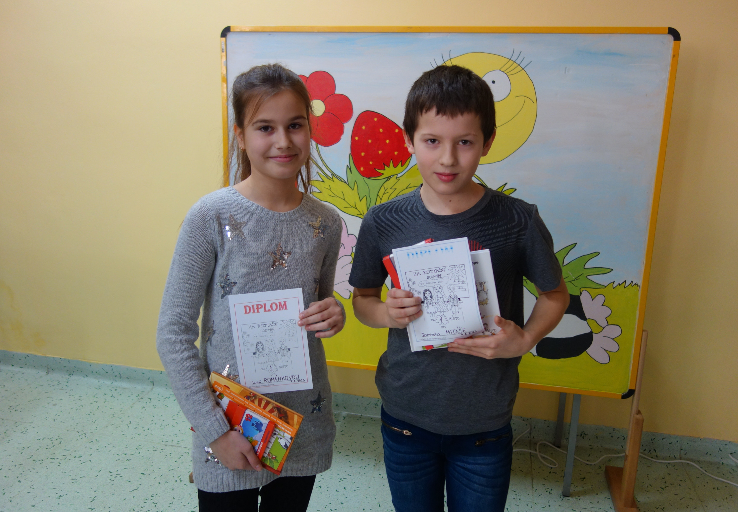 Ve čtvrtek 9. února se uskutečnilo ve školní jídelně školní kolo recitační soutěže pro 1. stupeň. Své nacvičené básničky postupně přednášeli žáci a žačky od nejmenších po největší a všem se jejich vystoupení velmi podařila. Na konci si společně zazpívali a všichni přednášející byli odměněni. Postupujícím gratulujeme a držíme palce v dalších kolech.