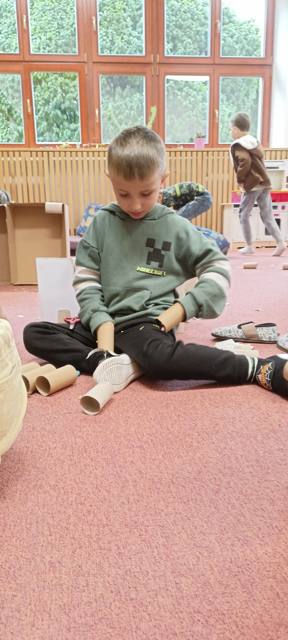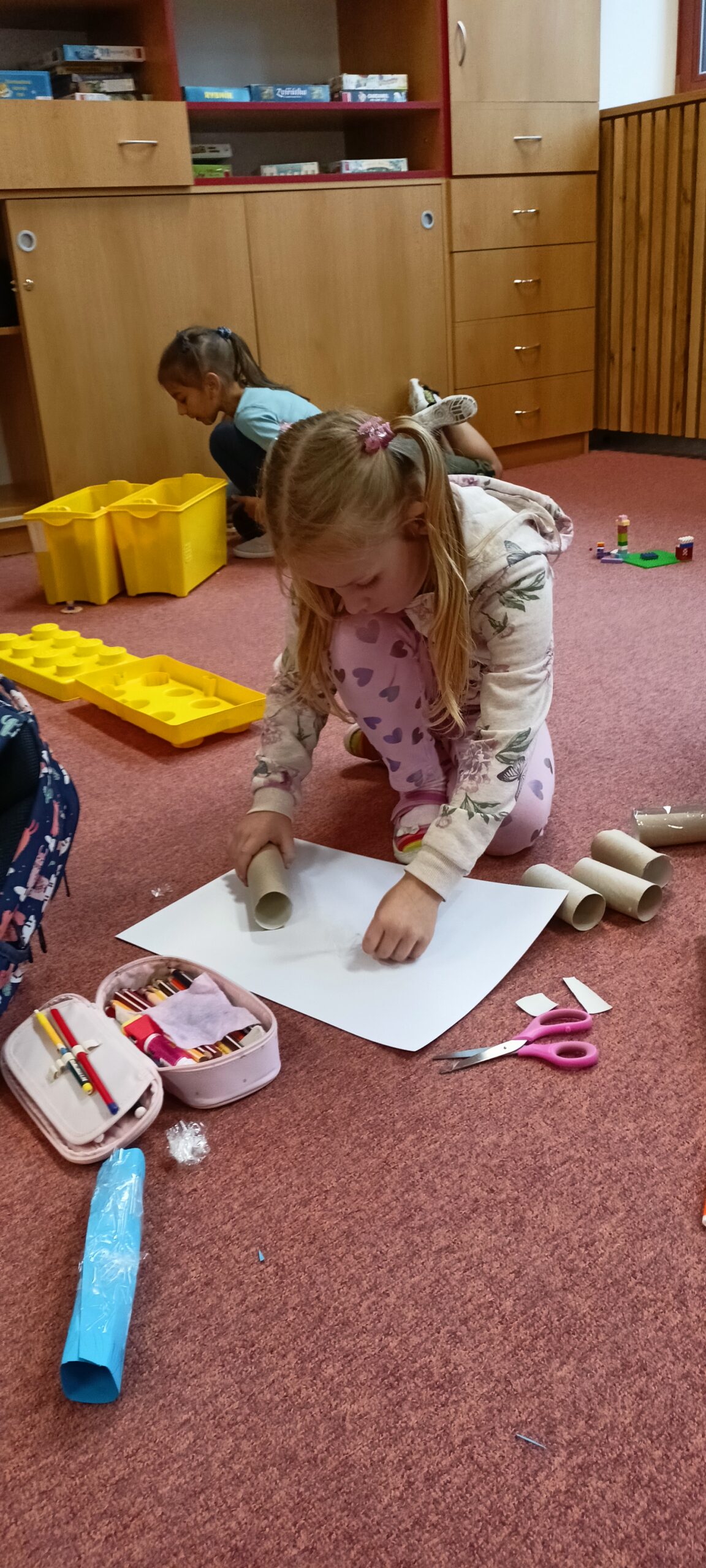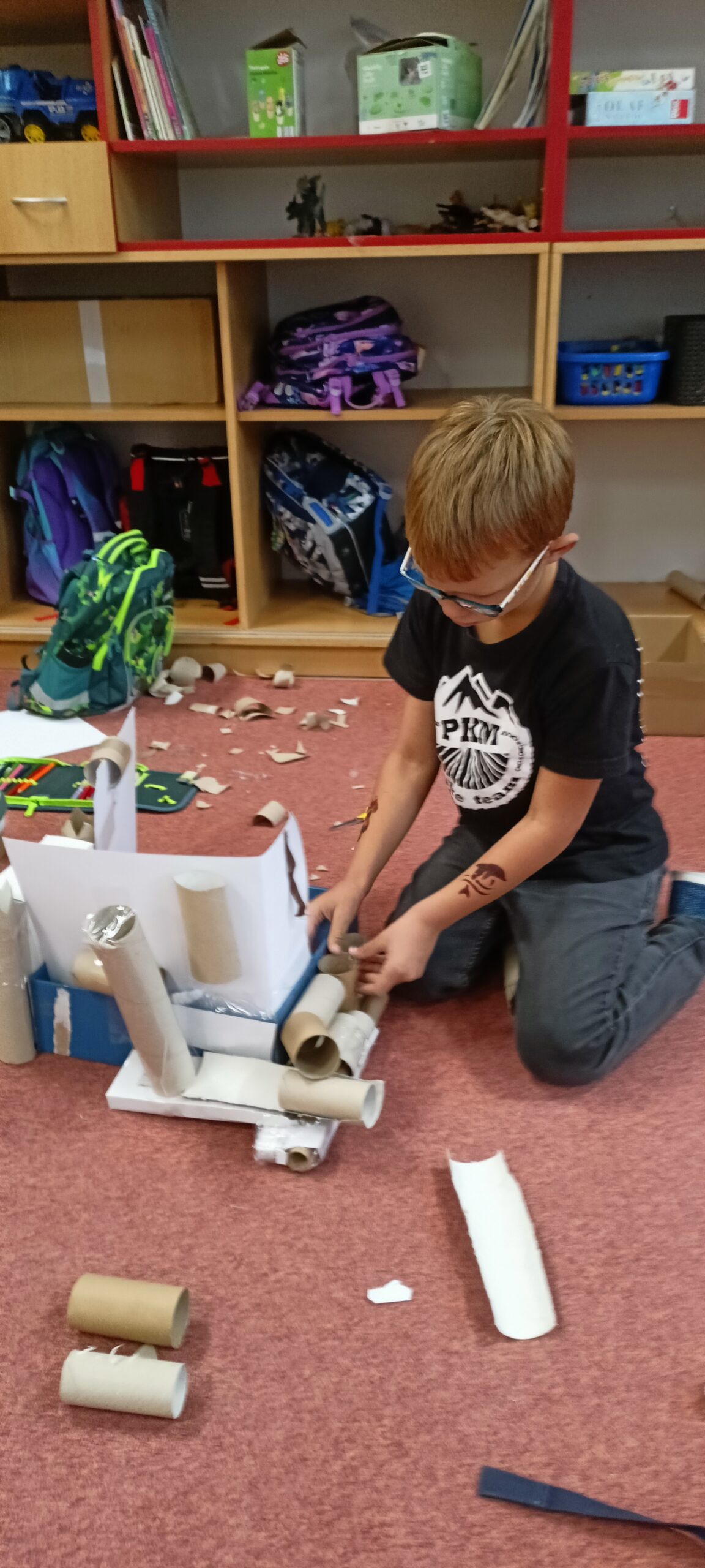 V tomto školním roce podniká družina prvňáčků výlety do různých zemí a do různých časových období. K tomu potřebujeme nějaký přístroj, který nás tam dostane. Všichni žáci se s nadšením pustili do výroby takového stroje, ať už samostatně nebo ve skupinkách. Většina pracovala s kartonem, někteří zvolili za stavební materiál lego. Jejich pracovní nasazení a radost můžete vidět na fotografiích.