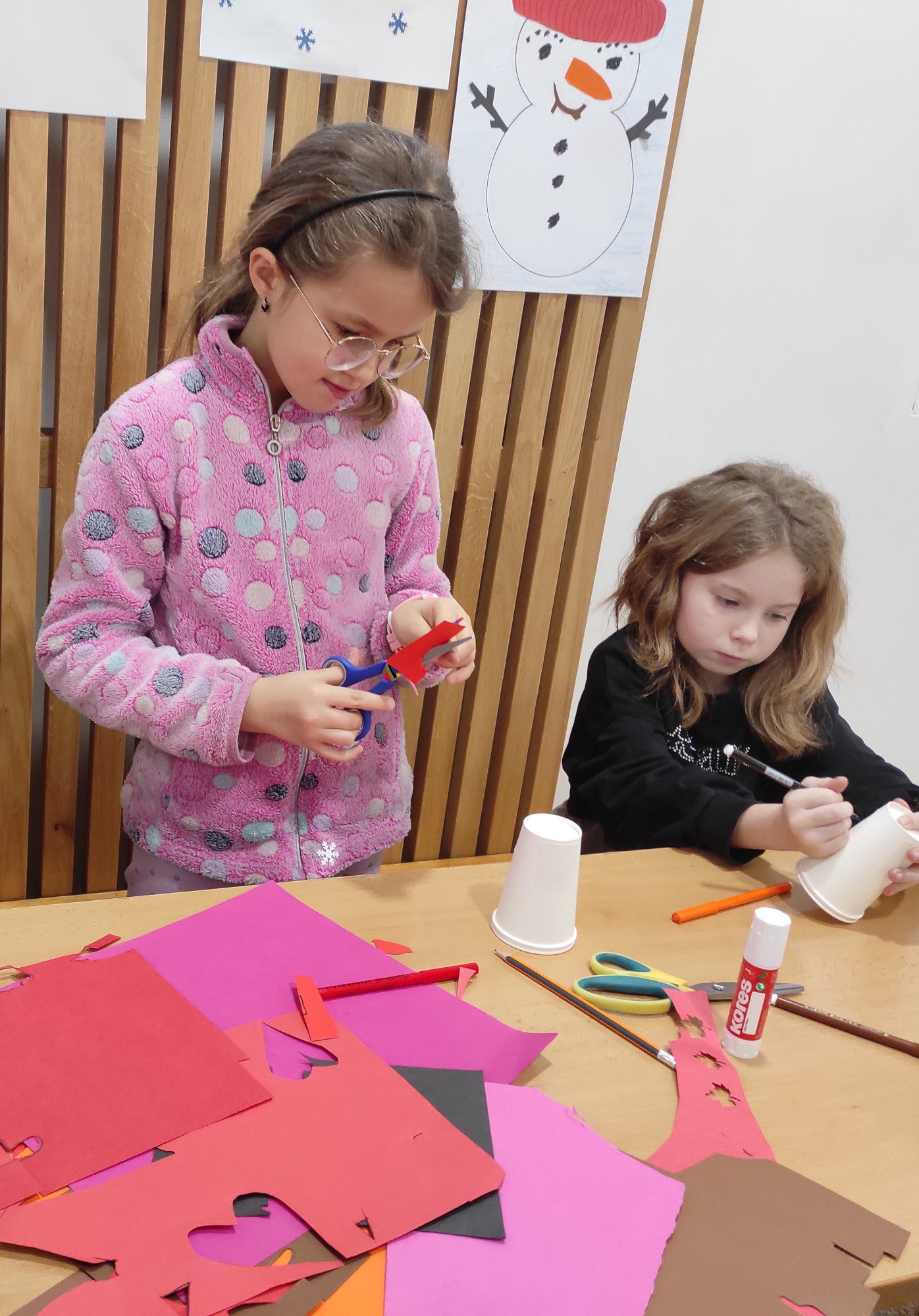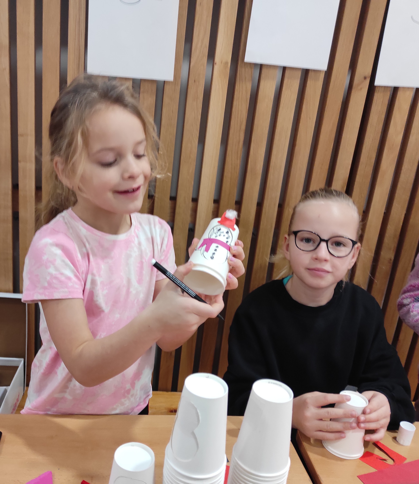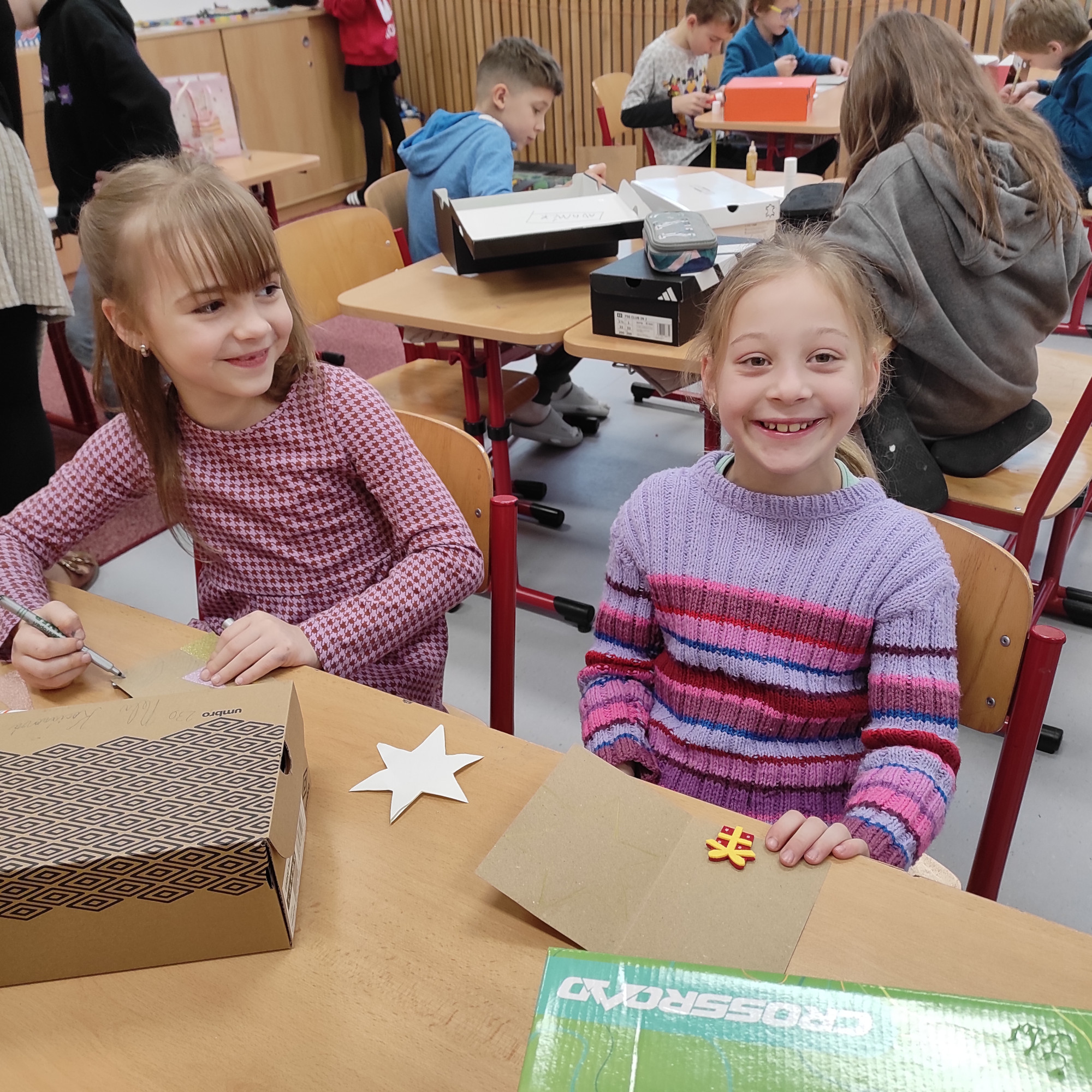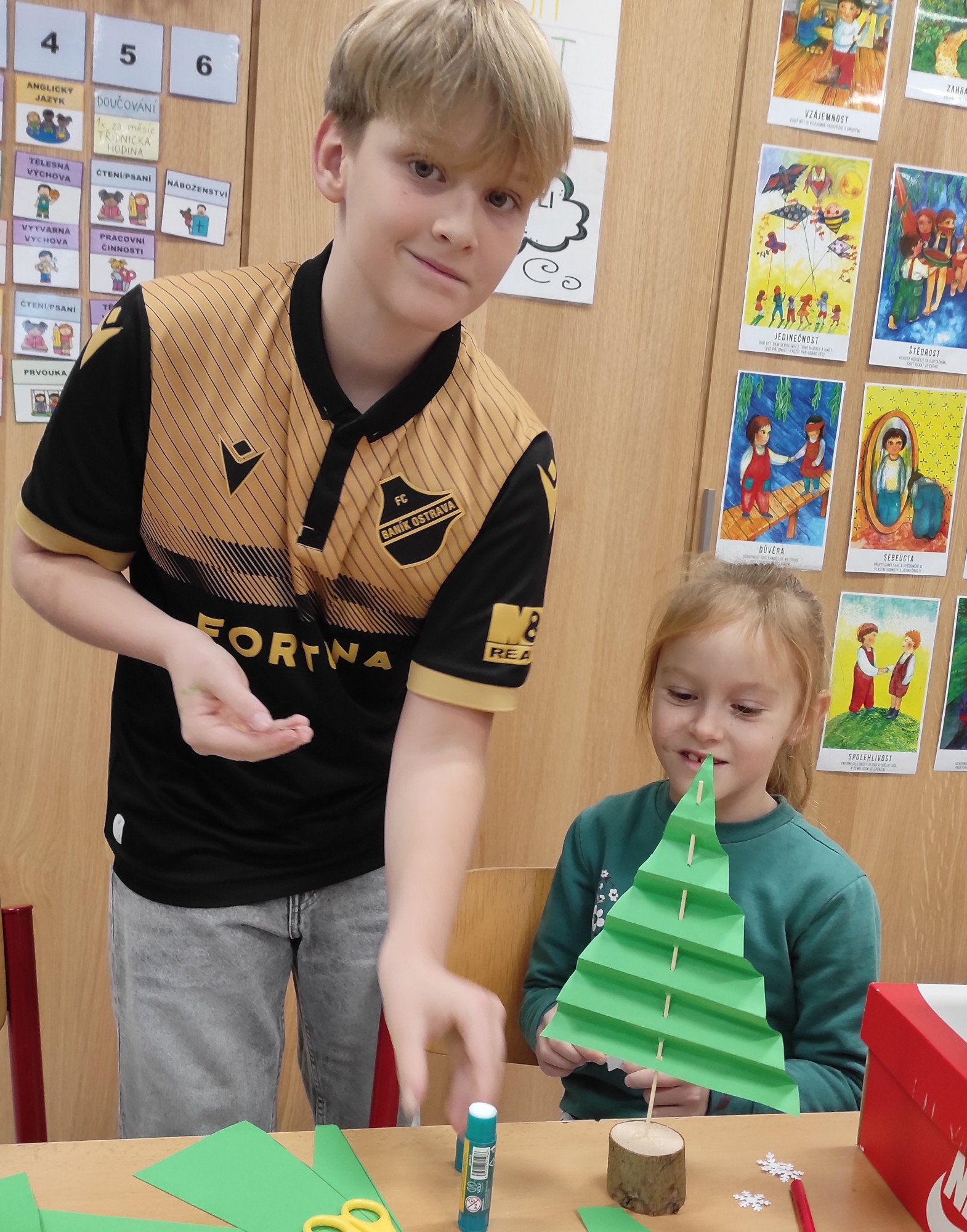V pátek 12. prosince jsme měli na 1. stupni Vánoční dílničky. V šesti třídách si paní učitelky pro žáky přichystaly nějaký výrobek – vánoční přání, andílka, sněhuláčka, stromeček, sněžítko a ozdoby z kartonu a vlny. V 1. hodině si žáci výrobek udělali ve své kmenové třídě. Pak se po skupinkách i jednotlivě rozešli do ostatních tříd a pustili se do práce na dalších výrobcích. Starší žáci pomáhali těm mladším a někteří z nich si je dokonce vzali pod svá křídla a obcházeli s nimi všechny třídy. A to je bezva. Často se taky stalo, že si žáci jeden výrobek přišli udělat podruhé, dokonce i potřetí. Během čtyř vyučovacích hodin se vše parádně stihlo. Třídy byly uklizené, výrobky hotové, žáci, paní učitelky a asistentky spokojené.