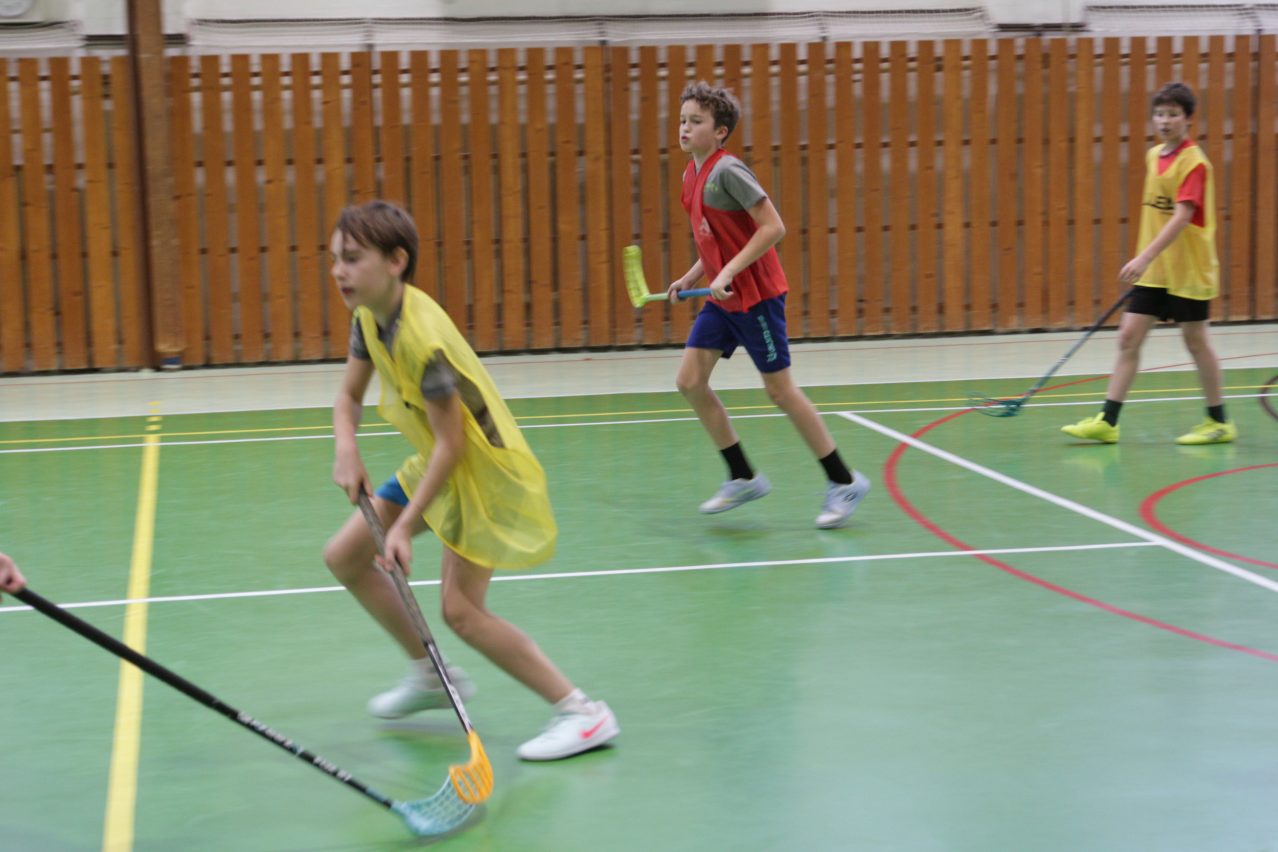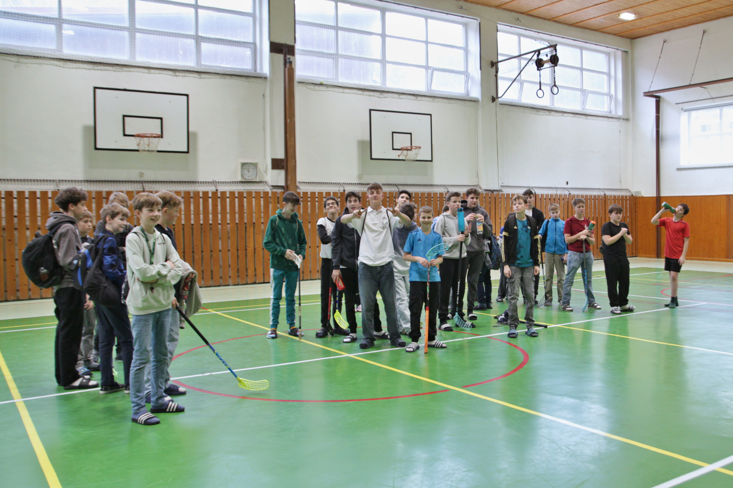 Florbalový turnaj měl letos netradiční podobu – týmy byly losovány napříč třídami a konečné pořadí se nevyhlašovalo. Smyslem bylo především si zahrát, pobavit se a užít si sportovní dopoledne, proto byli na závěr odměněni všichni zapojení žáci.