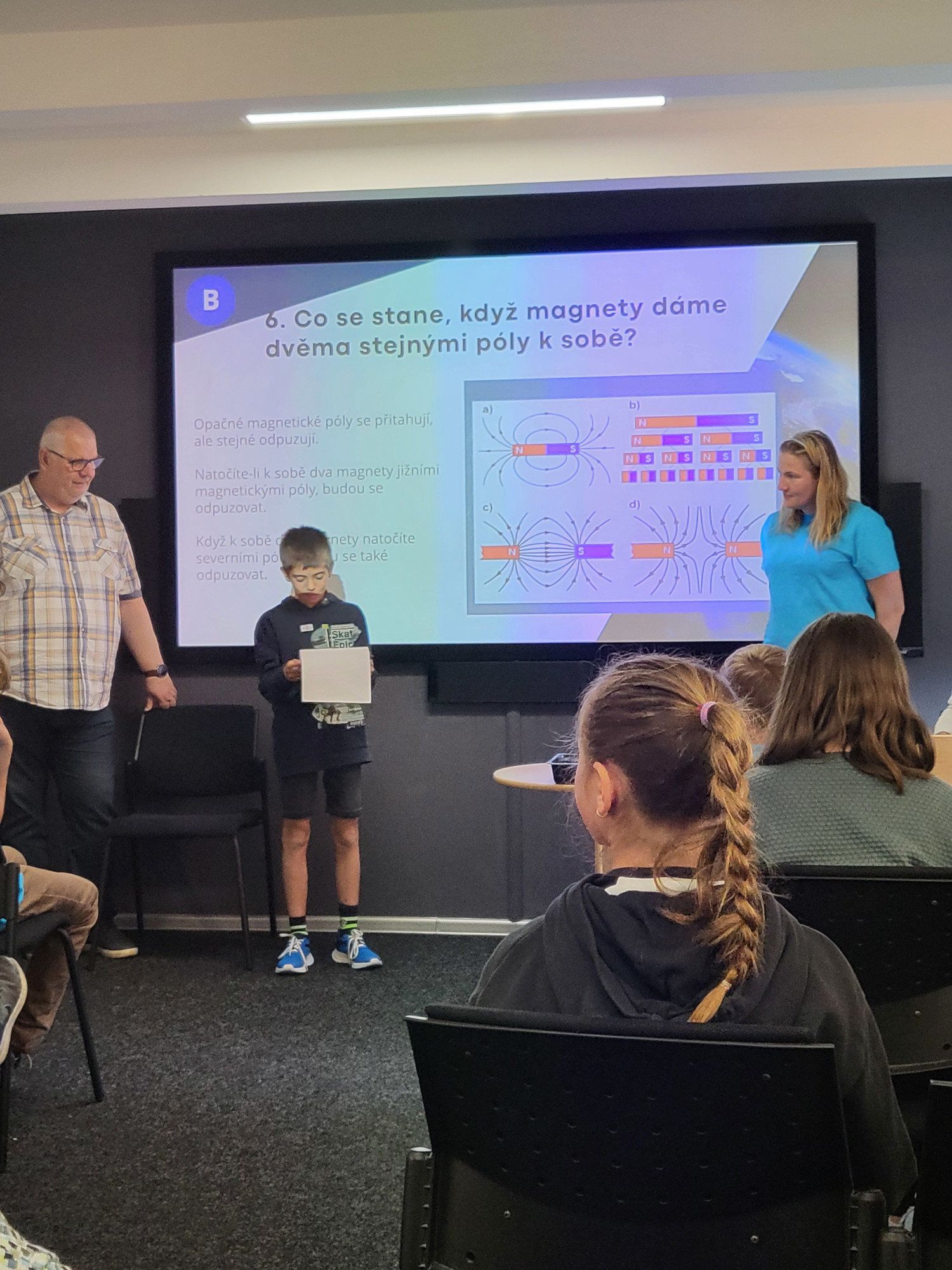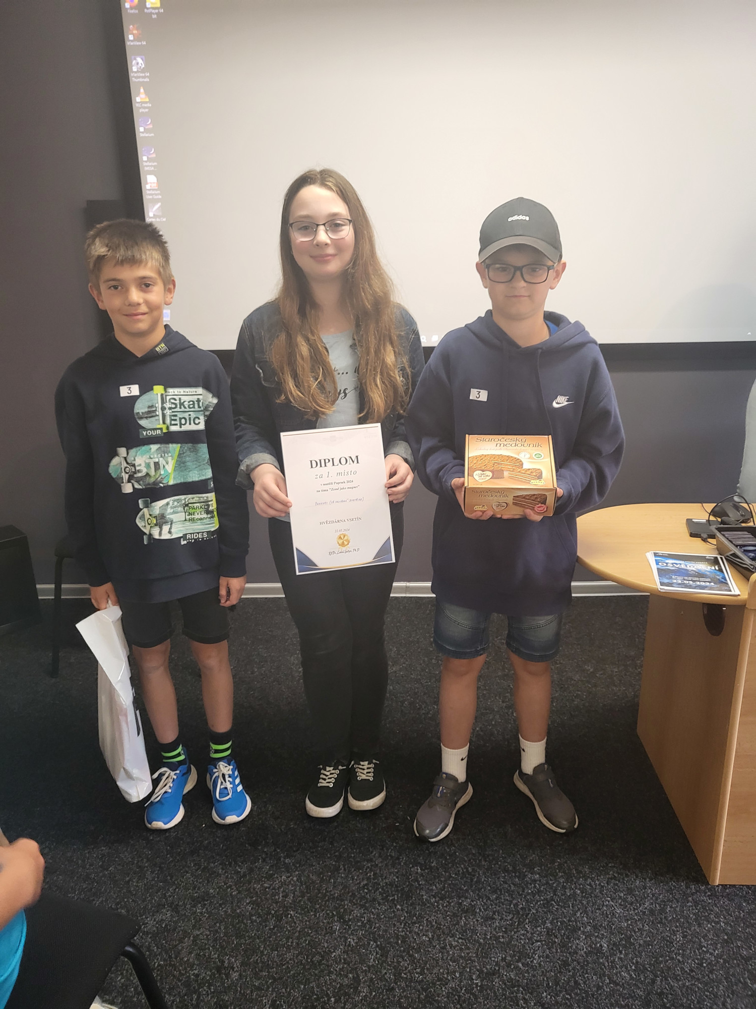 Hvězdárna Vsetín vyhlásila novou vědecko-popularizační soutěž „Paprsek“ a my vyslali zástupce našich žáků zjistit, o co se vlastně jedná. Ve středu 22. 5. se bojovat vydali žáci páté třídy: Martina Ježová, Šimon Štěpán a Lukáš Karafiát, o den později 23. 5. žáci Barbora Žambochová (9.), Pavlo Nikitenko (8.) a Nikol Frydrychová (7.). Po úvodním kvízu se celý tým vydal plnit badatelské úkoly týkající se magnetizmu, které následně před všemi prezentovali a obhajovali svůj postup. Mladším z žáků se dařilo perfektně – vybojovali 1. místo. Starší žáci se pak umístili na 5. místě.