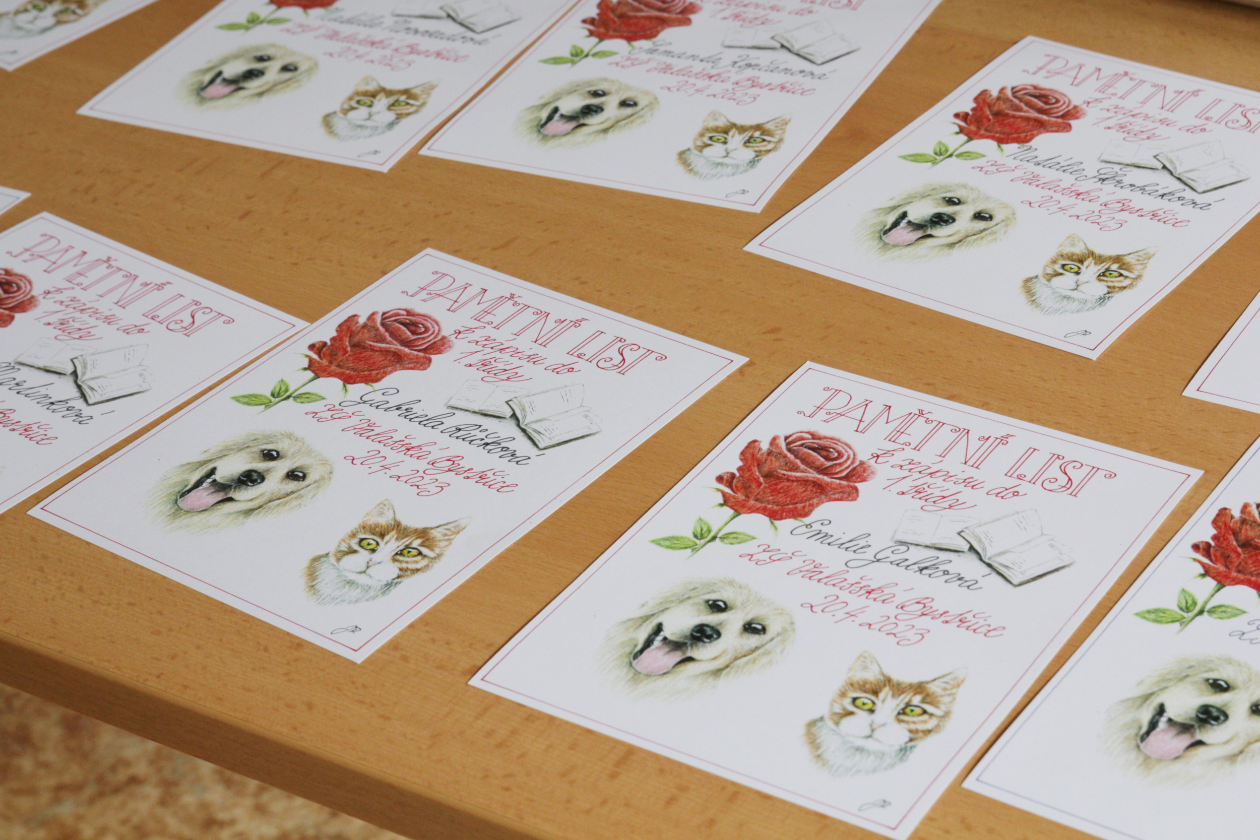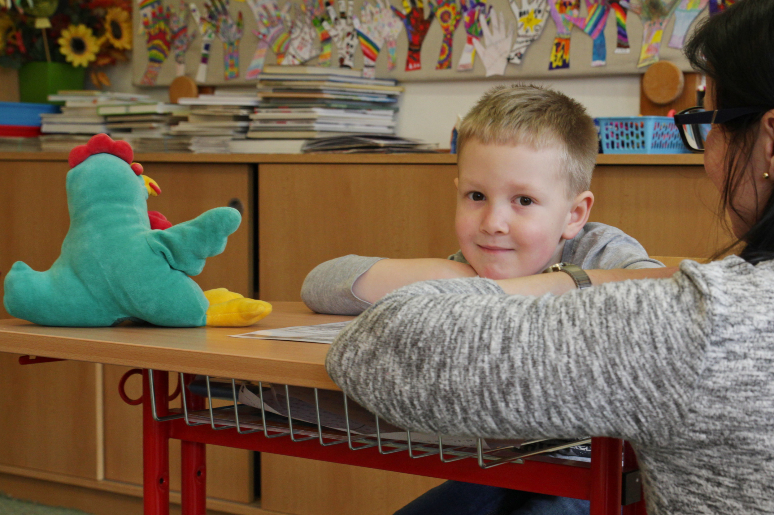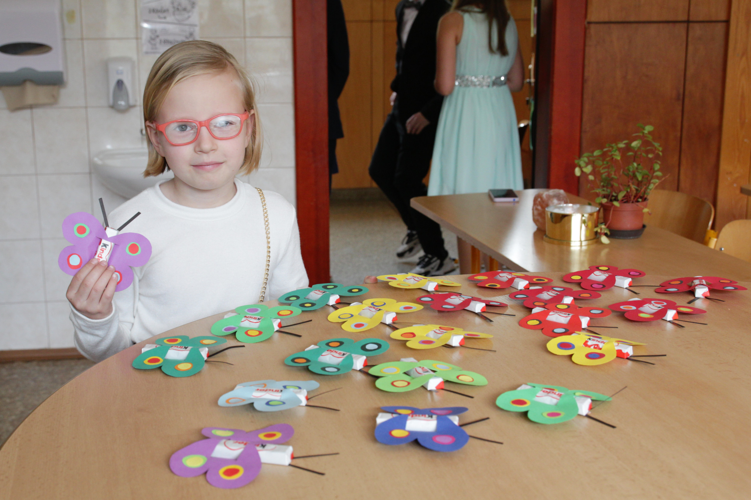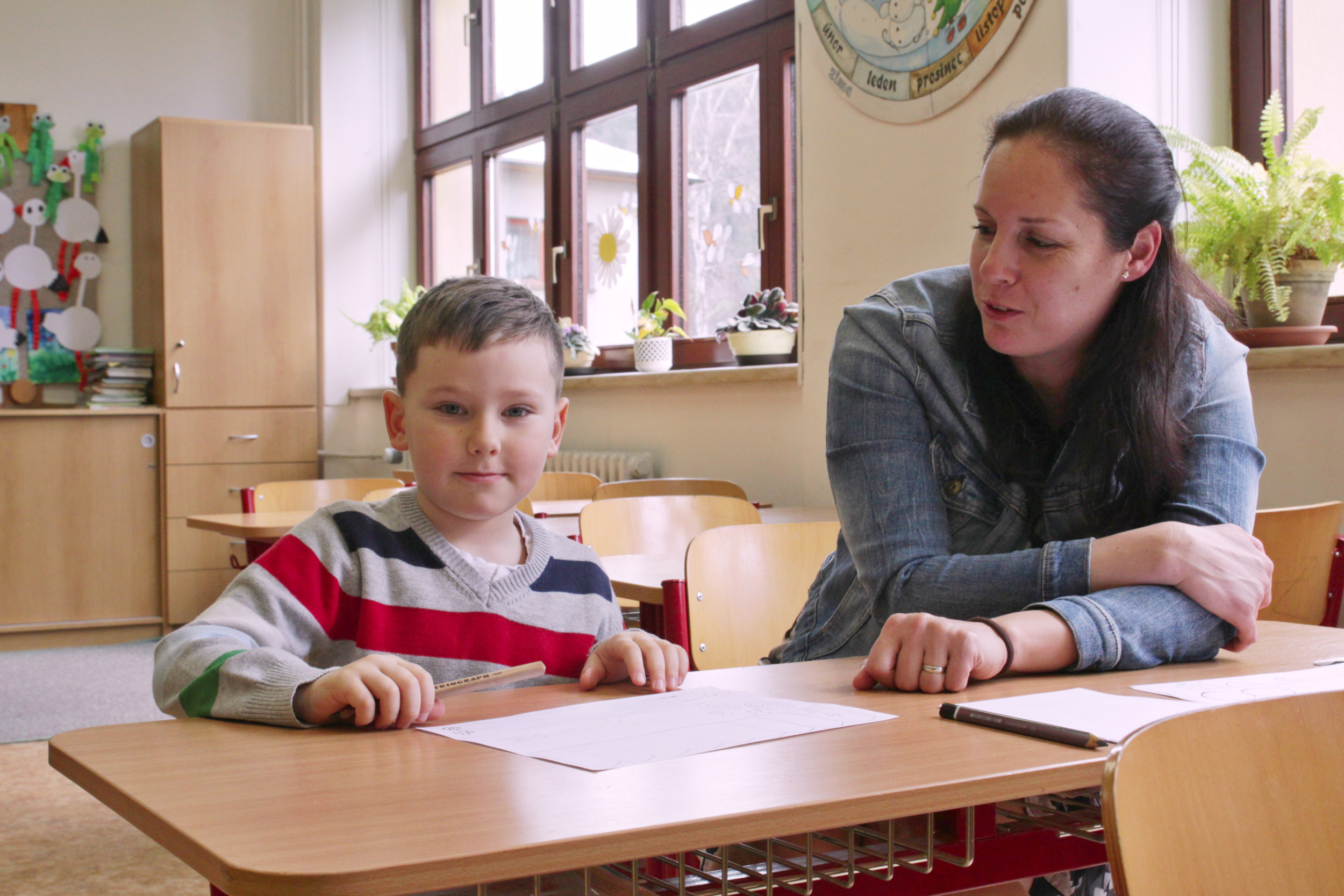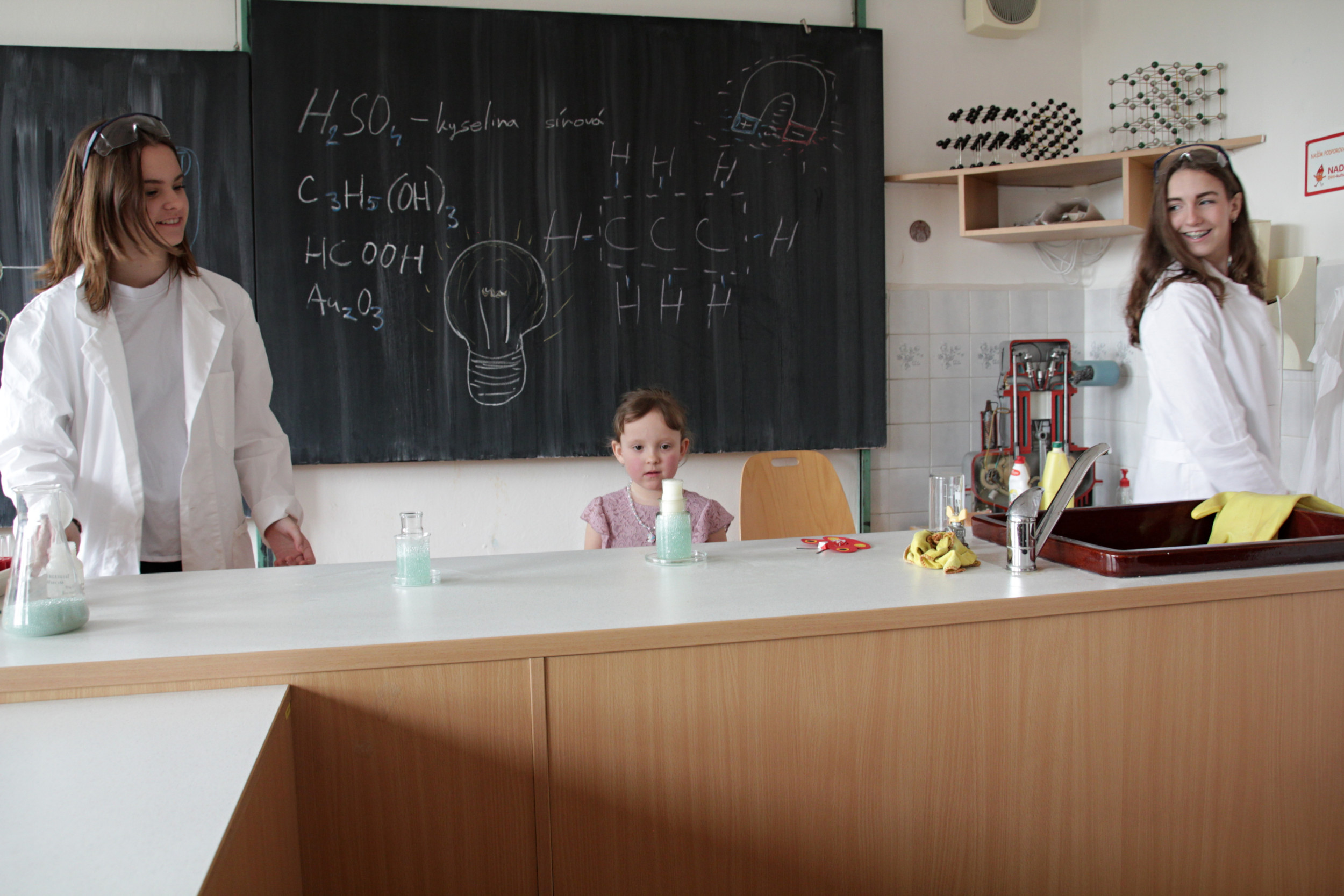 Ve čtvrtek 20. dubna od půl 2 odpoledne bylo ve škole živo. Probíhal totiž zápis žáků do první třídy, kterého se zúčastnilo 28 budoucích prvňáčků s rodiči. Aby dojem z nového prostředí byl co nejpříjemnější, žáci 8. třídy po zápise provedli děti po škole. Ukázali jim učebnu přírodopisu, kde si děti mohly pohladit morče nebo si prohlédnout hady, ryby a oblovky, v učebně chemie si děti vyzkoušely jednoduchý pokus a v ateliéru si mohly vybarvit obrázek. Za to vše si pak domu odnášely sladkou odměnu a ručně nakreslený pamětní list, který navrhla naše šikovná osmačka Jennifer Pomklova.