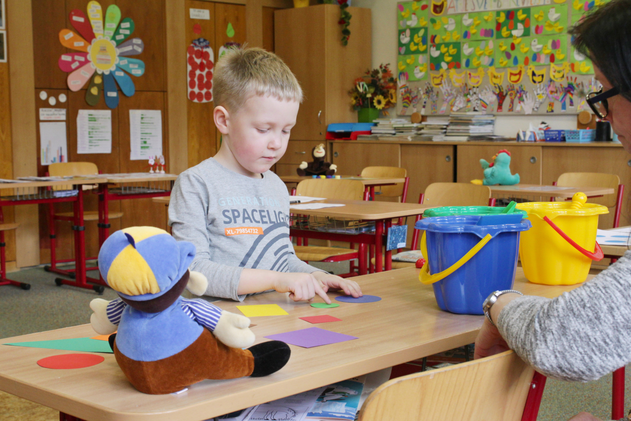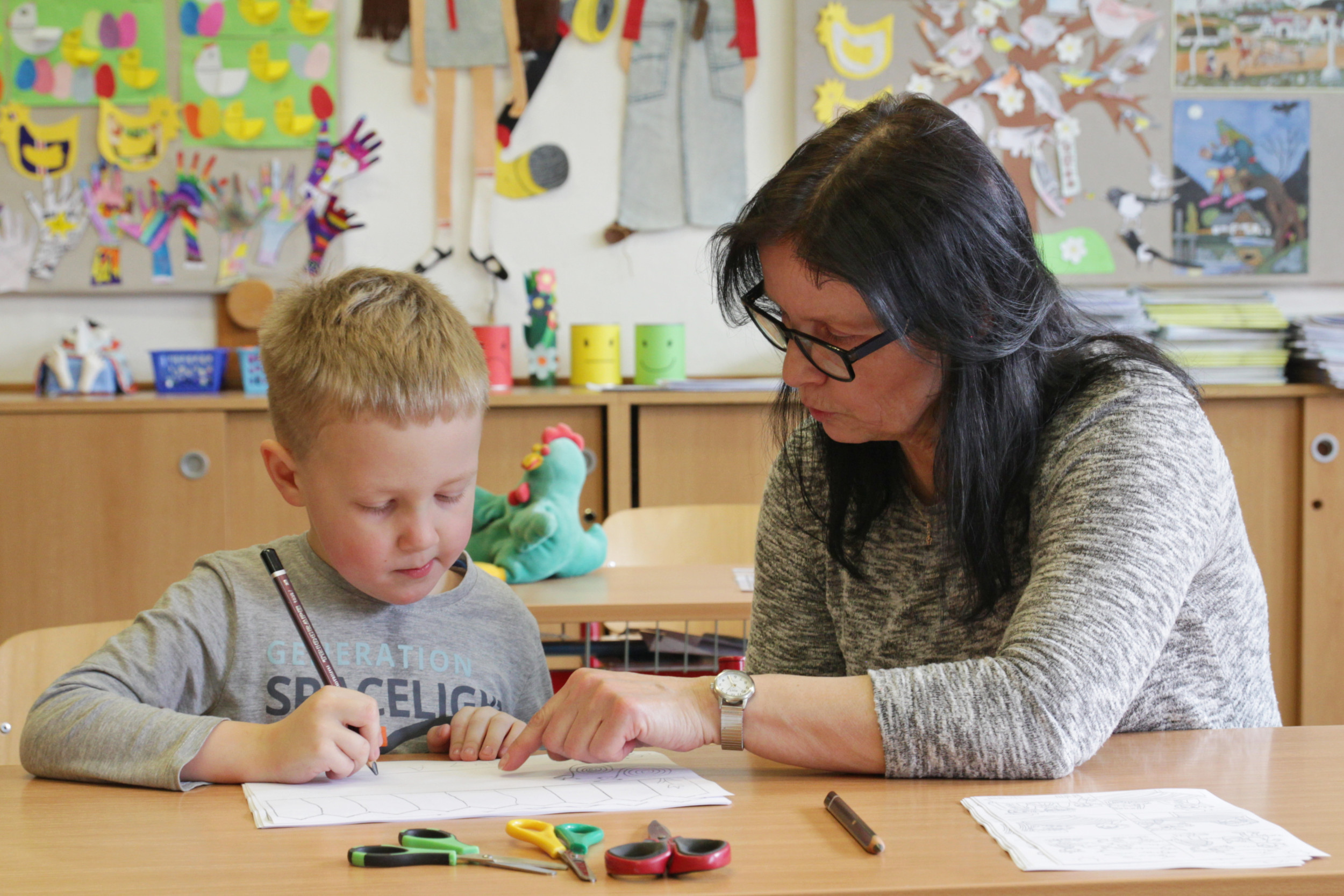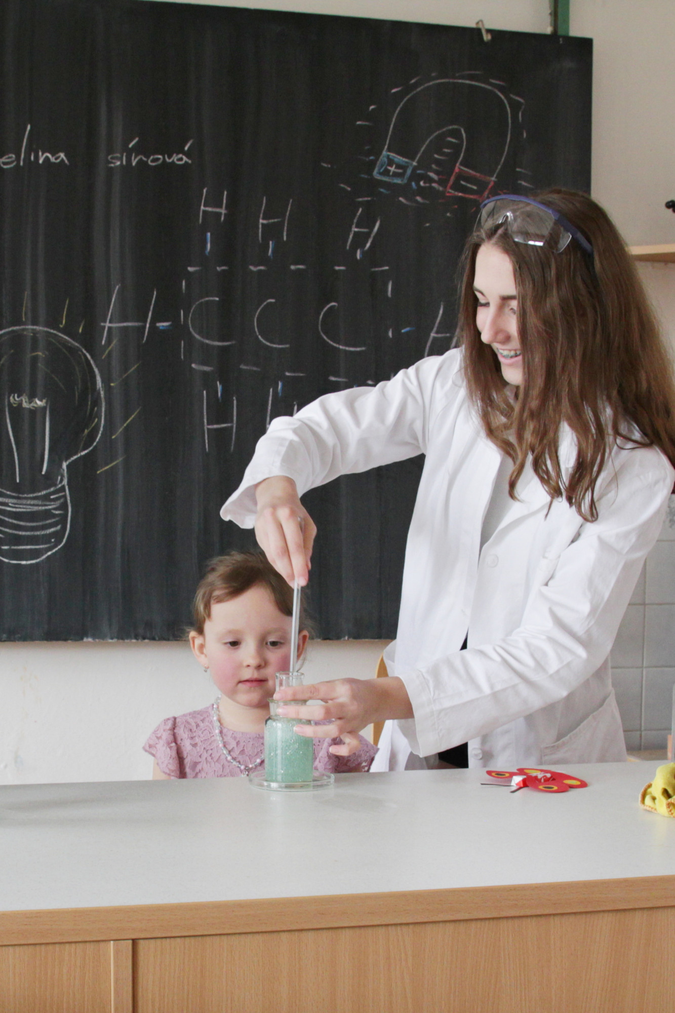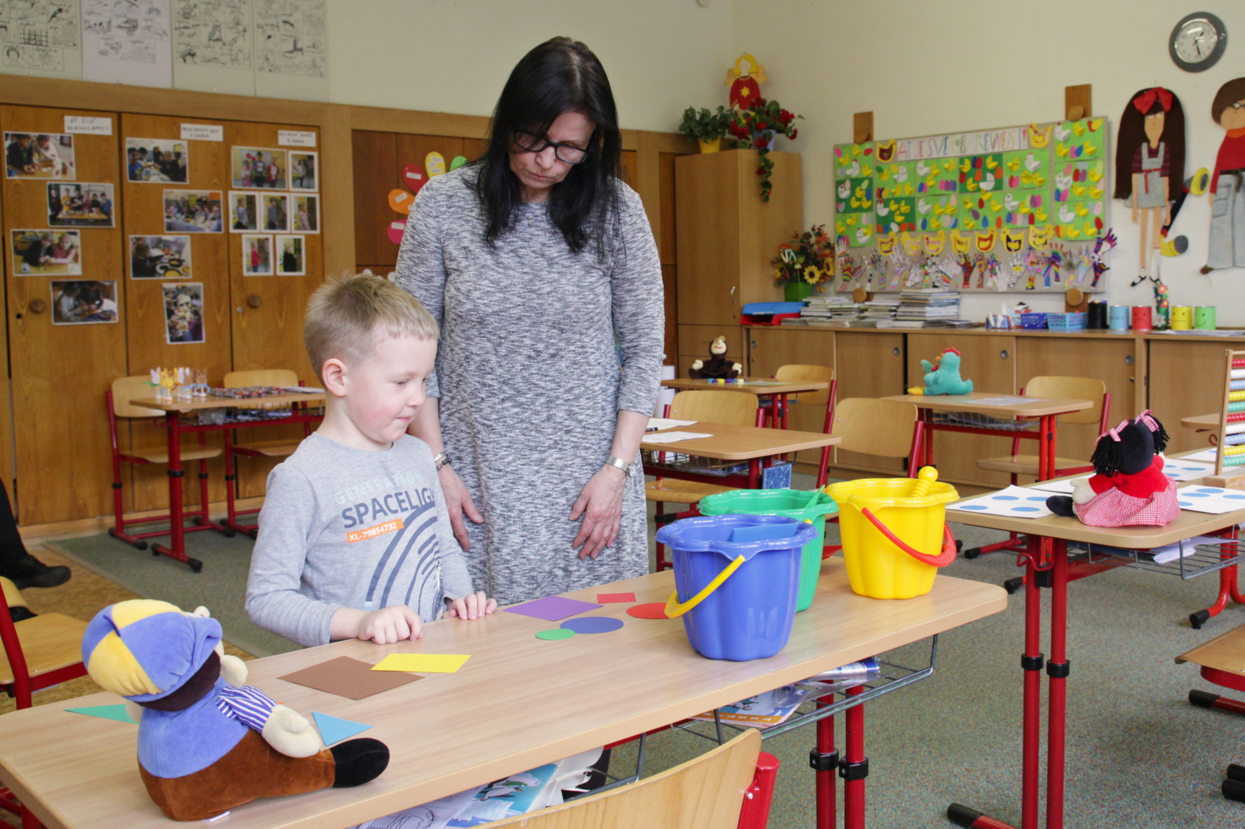 Ve čtvrtek 20. dubna od půl 2 odpoledne bylo ve škole živo. Probíhal totiž zápis žáků do první třídy, kterého se zúčastnilo 28 budoucích prvňáčků s rodiči. Aby dojem z nového prostředí byl co nejpříjemnější, žáci 8. třídy po zápise provedli děti po škole. Ukázali jim učebnu přírodopisu, kde si děti mohly pohladit morče nebo si prohlédnout hady, ryby a oblovky, v učebně chemie si děti vyzkoušely jednoduchý pokus a v ateliéru si mohly vybarvit obrázek. Za to vše si pak domu odnášely sladkou odměnu a ručně nakreslený pamětní list, který navrhla naše šikovná osmačka Jennifer Pomklova.