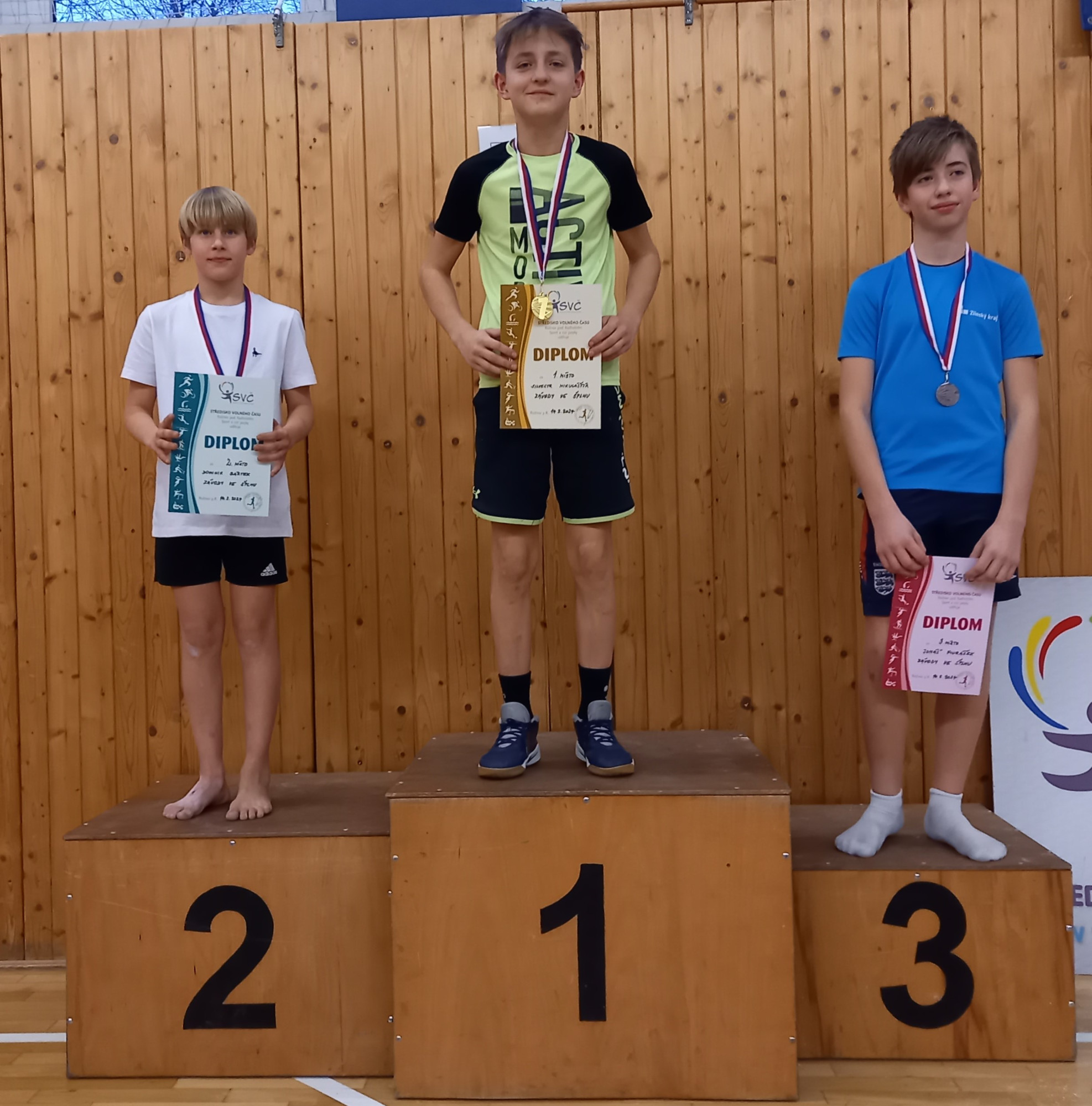 Celkem 10 našich žáků se umístilo na stupních vítězů a několik dalších dělilo od lepšího umístění jen desetiny nebo dokonce setiny sekundy. O první umístění na stupních vítězů se postaral Aron Šimčík, který se s časem 8:95 umístil na 2. místě. Dalším oceněným byl Šimon Pumprla, který se svým časem 7:61 obsadil 3. místo. Stříbrnou medaili ze závodů si odnesla Berenika Polášková s časem 6:04 a o bronzovou medaili se postaral Tomáš Petružela s časem 6:84. Posledním oceněným žákem z prvního stupně byl Šimon Štěpán, který si bronzovou medaili zasloužil časem 5:54. O první zlatou medaili se postaral Silvestr Mikuláštík, který již po třetí obhájil 1. místo a časem 3:64 nechal své konkurenty více jak 2 vteřiny za sebou. O další umístění na stupních vítězů se postaral Jakub Mička, který s časem 4:73 obsadil 2. místo. Stříbrnou medaili si ze závodů odvezl i Benjamín Polášek s časem 3:35 a Barbora Žambochová s časem 6:22. O druhou zlatou medaili se postaral Jaroslav Mitáš, který s časem 2:40 vyhrál svoji kategorii. Všem našim závodníkům děkujeme za skvělou reprezentaci a gratulujeme k pěkným výkonům.