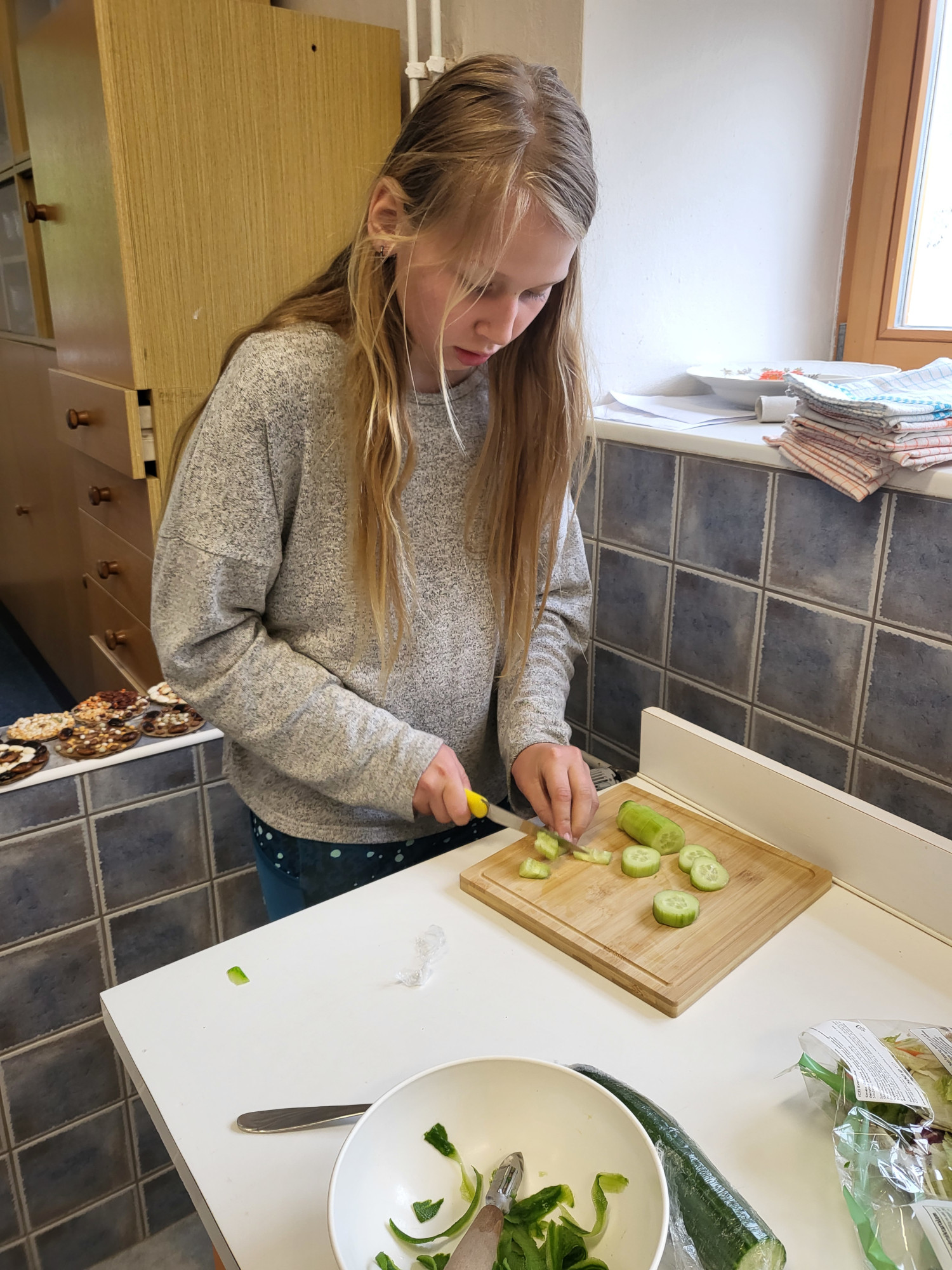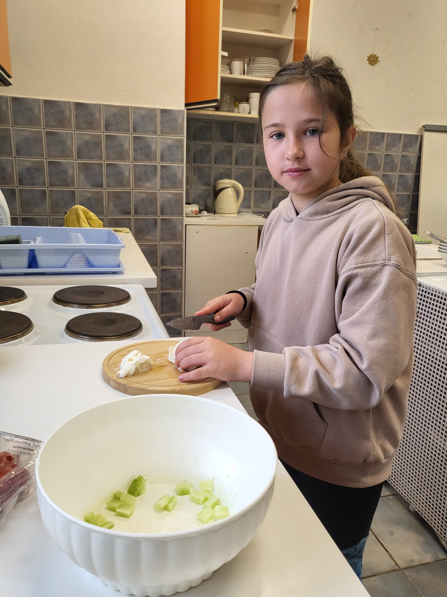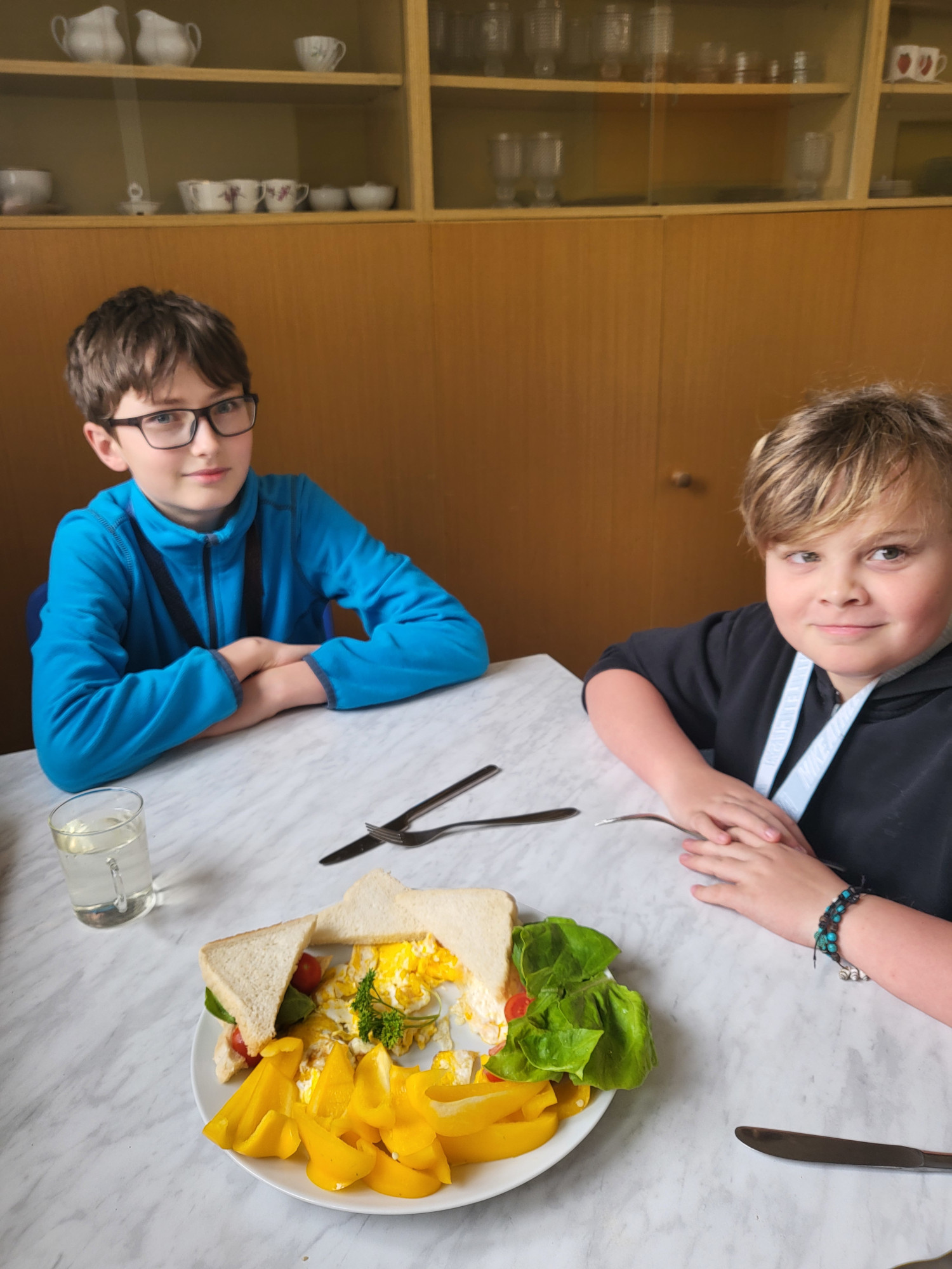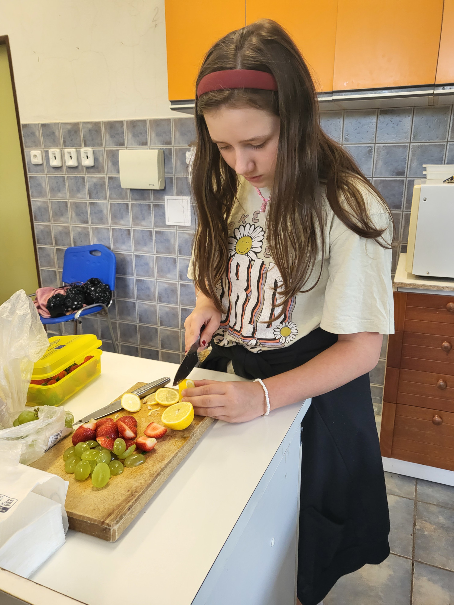 V páté třídě se biologii člověka a trávicí soustavu snažíme žákům co nejvíce přiblížit. Bavíme se o živinách, o tom, že je důležité jíst pravidelně, přiměřeně a pestře. Páťáci po úvodních hodinách měli za úkol vytvořit skupinky a vymyslet podle zadaných pravidel super jídlo pro školáka. Každá ze skupinek úkol pojala trošku jinak a vznikly tak skvělé jídla – ovesná kaše s ovocem, těstovinový salát s kuřecím masem, zeleninový salát s mozzarellou, tortilly nebo třeba sendviče s vajíčkem a zeleninou. Žákům se práce tak dařila a bavila je, že si vaření ještě brzy zopakujeme.